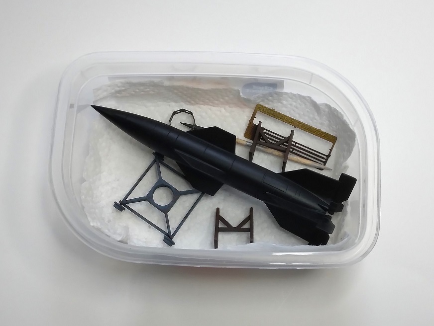 To není nabídka na svačinku, ale poznání, že i v krabce od salátu může být model... A dokonce ne jen tak ledajaké předlohy! EMW Wasserfall C2 představuje první moderní protiletadlovou raketu v historii. Projekt započal v roce 1943, 1. vzlet verze W1 proběhl 29.2.1944. Pravděpodobně bylo uskutečněno 35 startů prototypů. Vzhledem k chybějícímu vhodnému radiolokátoru bylo navádění změněno na povelové od pozemního operátora. Není známo kolik raket přežilo IIWW, ale rakety byly po válce zkoušeny v USA i v SSSR.