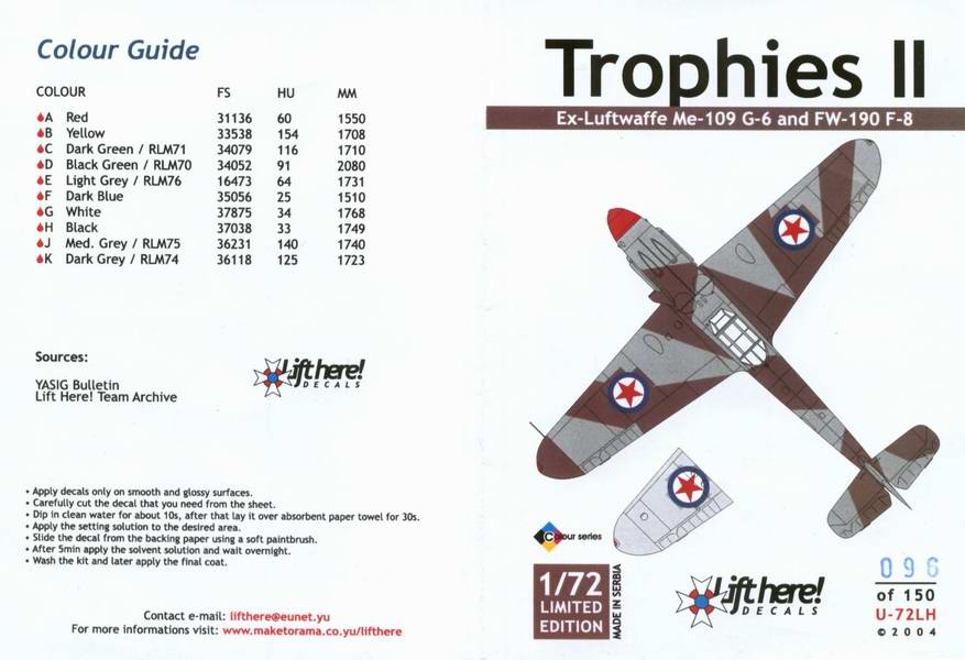 Ad Jugoška : na tuto kamo mám 3 zdroje, tedy 2 jsou stažené návody k dekálům. Lift Here! udávají klasiku RLM 74, 75, 76, to samé Karaya a pouze