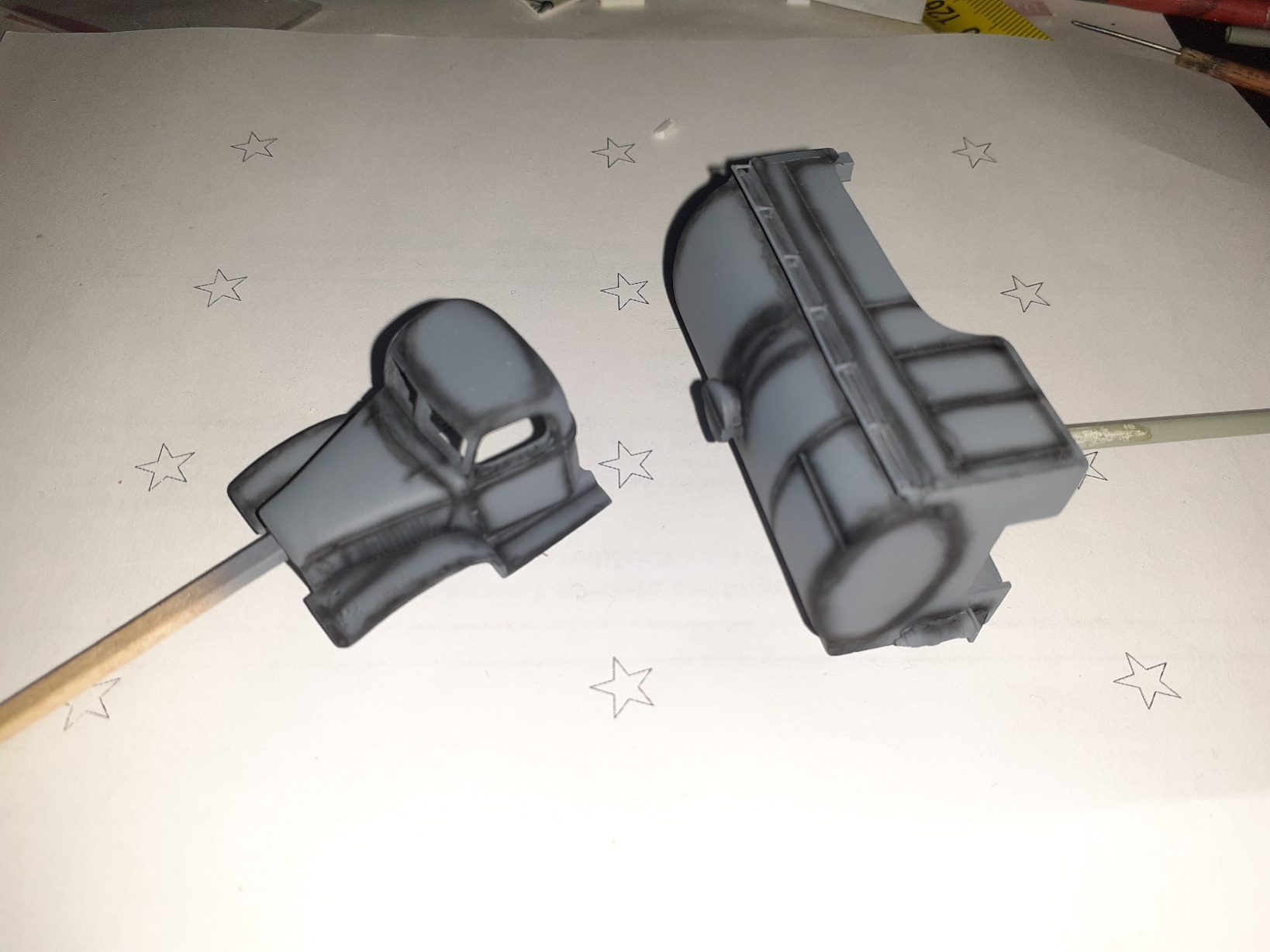 Zatiaľ som v štádiu prekreslovania plánikov a plášťov nadstavby z návodu na rezinový set od CMK. Predpokladám, že dnes kreslenie dokončím a zajtra začnem so stavbou. Oválnu cisternu vyrobím obalu balzamu na pery, skrine budu z plastikových telefónnych kariet.