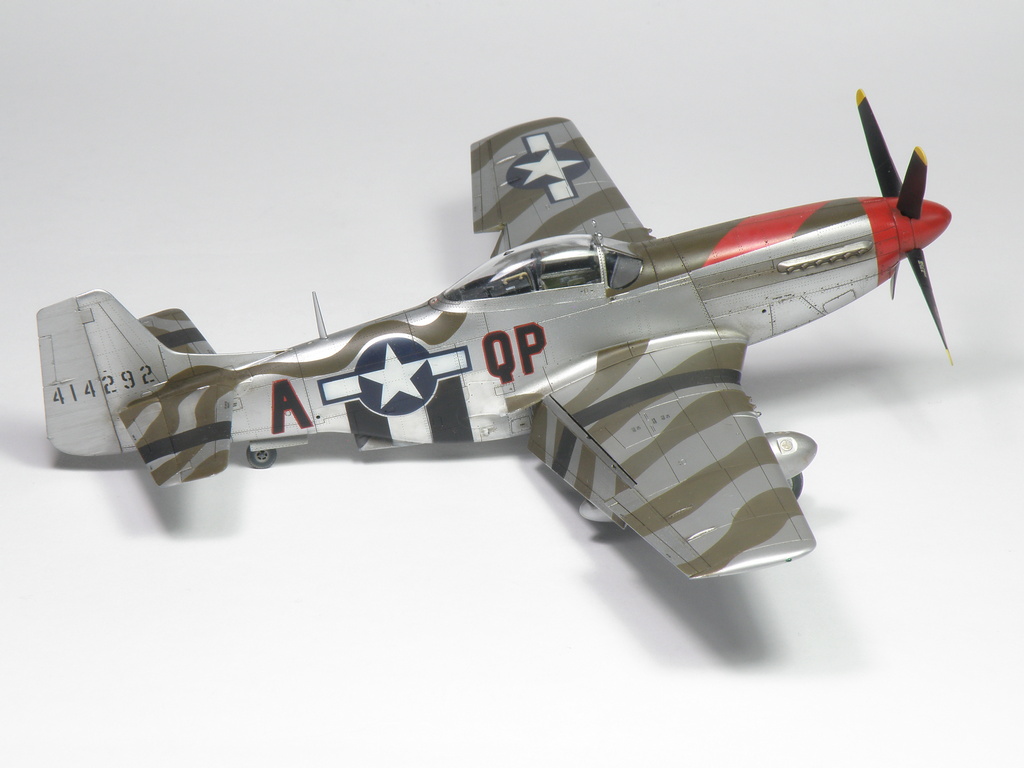 Veškeré označení včetně pruhů je stříkáno přes masky OMASK. NA podvozky byly použity https://www.omask.cz/74810-1/48-p-51d-m ... for-eduard záslepky.