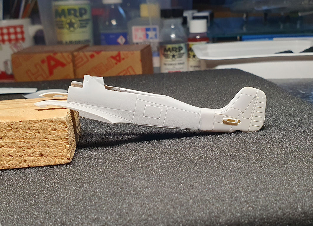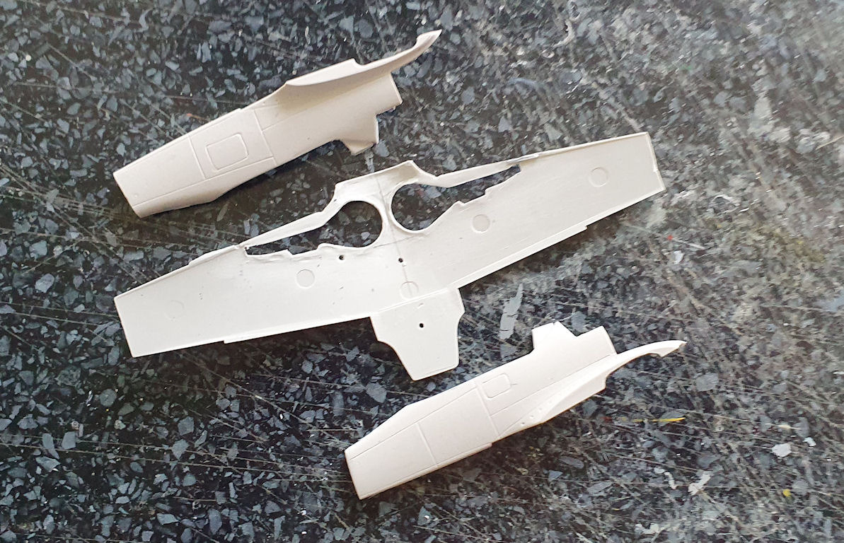 Nějak jsem to vyhodnotil a začal, vytáhl jsem z archívu konverzní a zbylé díly pro fokouše a zkusím z toho zbastlit stodevadesátku s ocasem z Ta 152 a odkrytým motorem. V akci frézka, glaspapír i jemnost 320, pilníky a pilky všeho druhu, rozhodně si přijdou na své.