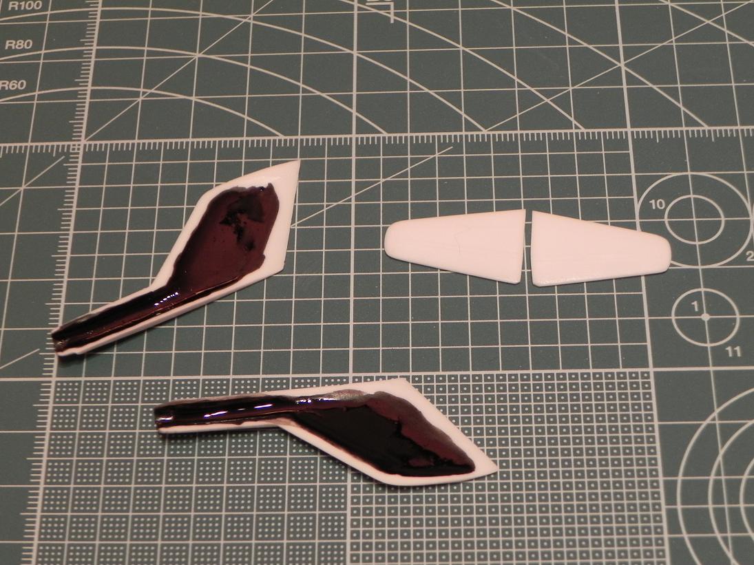 Tak začínáme tak očištěné díly zabroušeno přeryto... na pravé straně ocasu chyběla jedna linka tak jsem jí musel dorýt... jinak zatím žádný závažný problém...