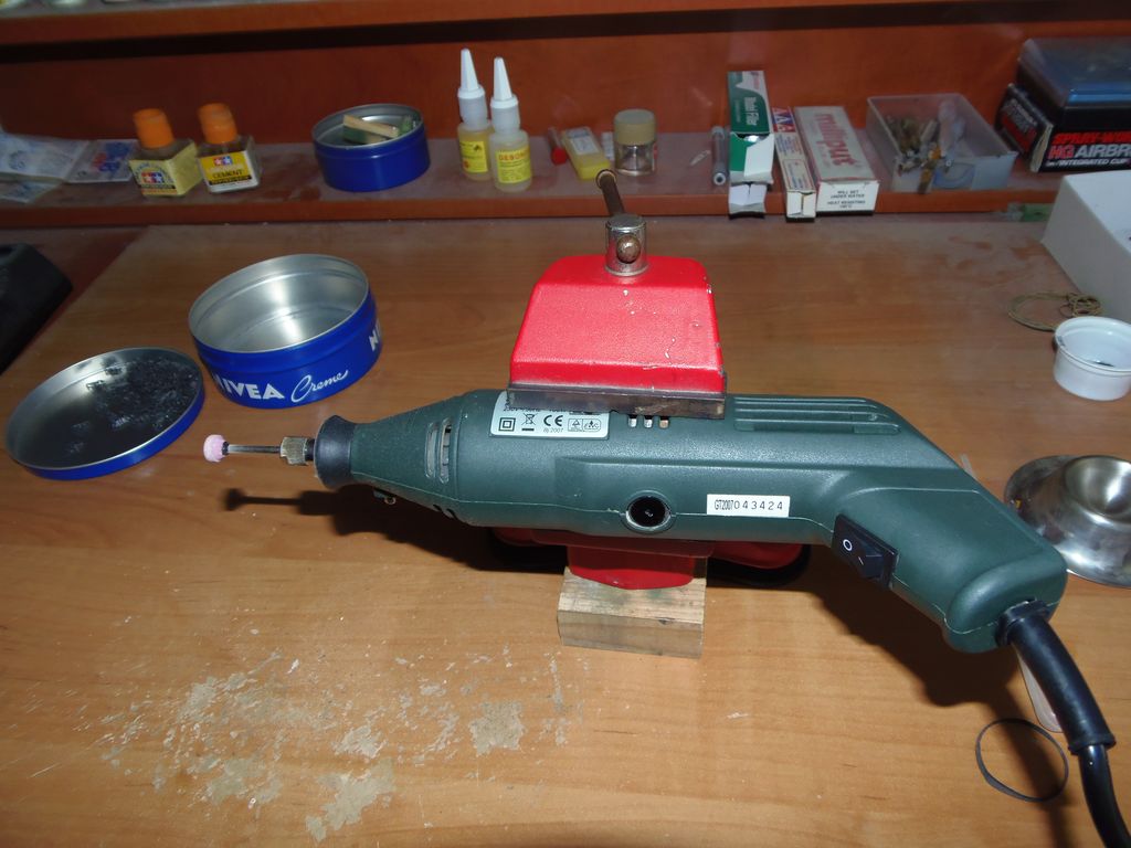 Trochu to tady oživim, fotky postupu na modelu zatím nemám. Jen přikládám foto pomocníka, kterýho jsem si dneska sestavil na odstranění vyhazováků na pásech...