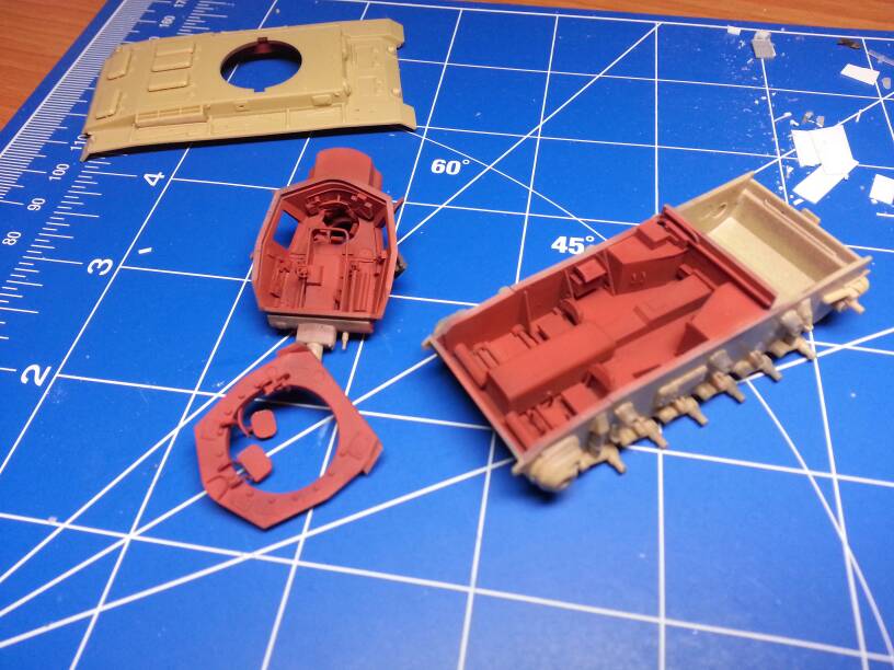 Dalsi mini postup. Zavreta korba, zalakovane matom a doplnene "plechy". Blatniky scratch 0.13mm evergreen, kanon aj gulomet odvrtany. Doplnene sietky od plusmodel. Perfektny material. Lepsie ako organza