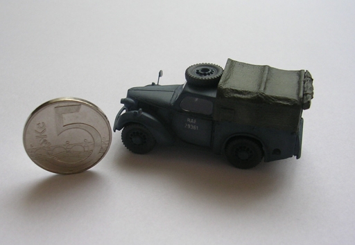 Jediné, čo som na tom rezine upravil bolo, že som oddelil predný nárazník, odbrúsil ten plný prechod a urobil nový nárazník. Okrem toho som doplnil zrkadlá a na zadné čelo tie odstávajúce dve výstuhy po bokoch. Dekály sú zbytky z Airfix letištného setu a F/II je maľované rukou.