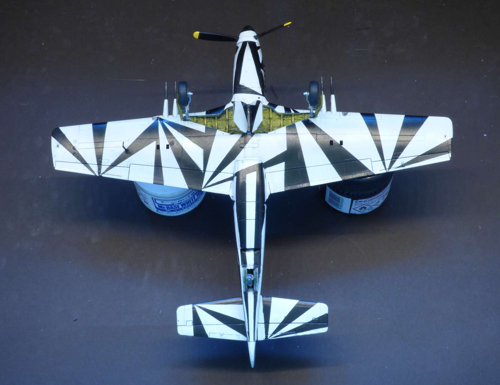 Celý spodek dáš černou, zvětšíš rozkres do měřítka, polepíš rozkres Tamyiapáskou, vyřezáváš trojúhelníčky a polepuješ - a pak to foukneš bílou...