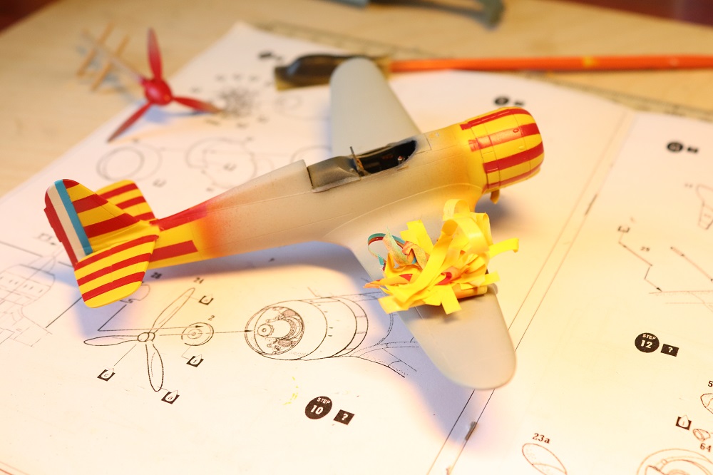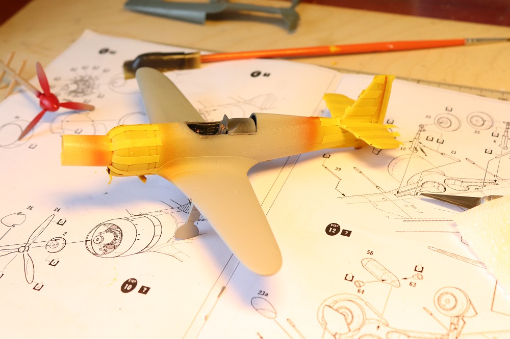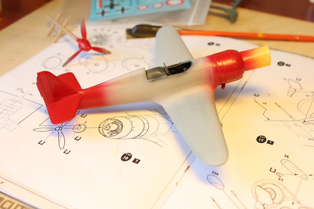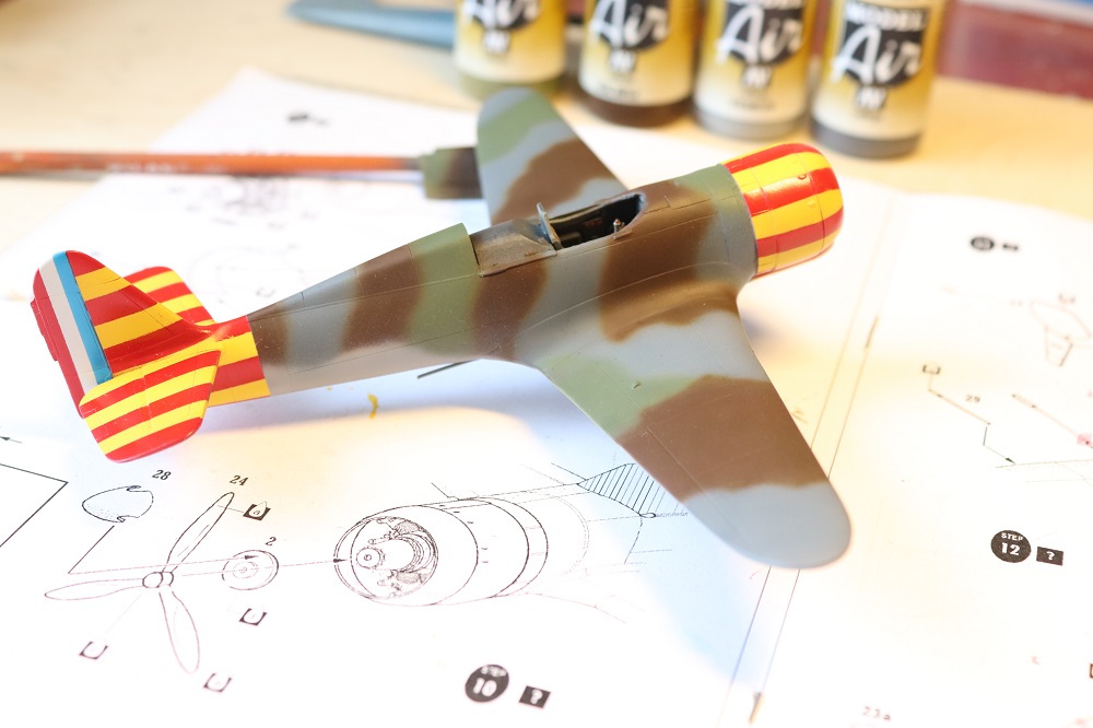 Začal jsem trikolorou na ocase, která je sice v obtisku, ale nechce se mi to řešit vodičkama.