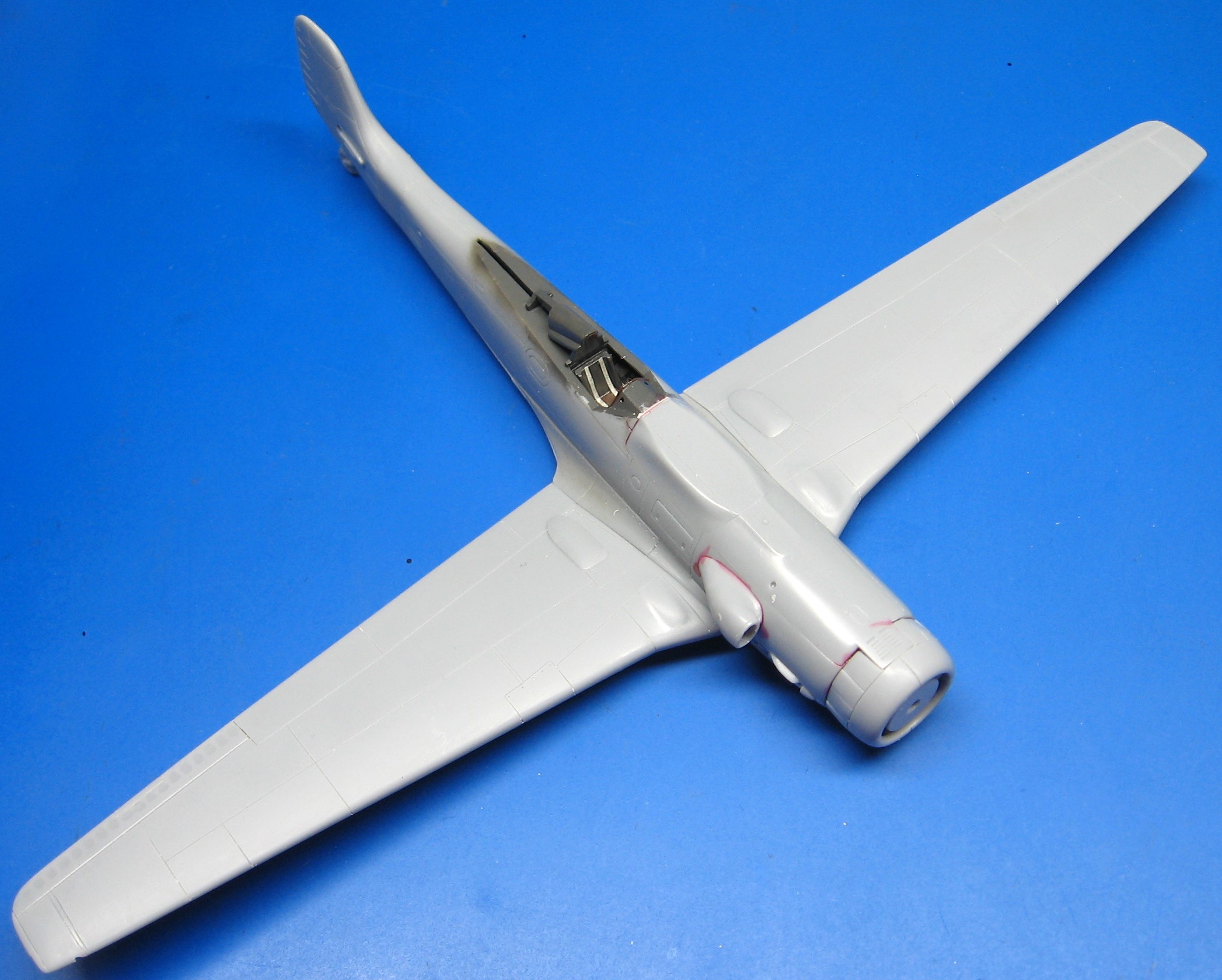 Rytí je místy dosti hrubé a mělké takže jsem jej protáhl..ovšem po slepení polovin k sobě jsem zjistil, že trup je širší než by měl být, tak nastalo řezání a místy ubírání materiálu.