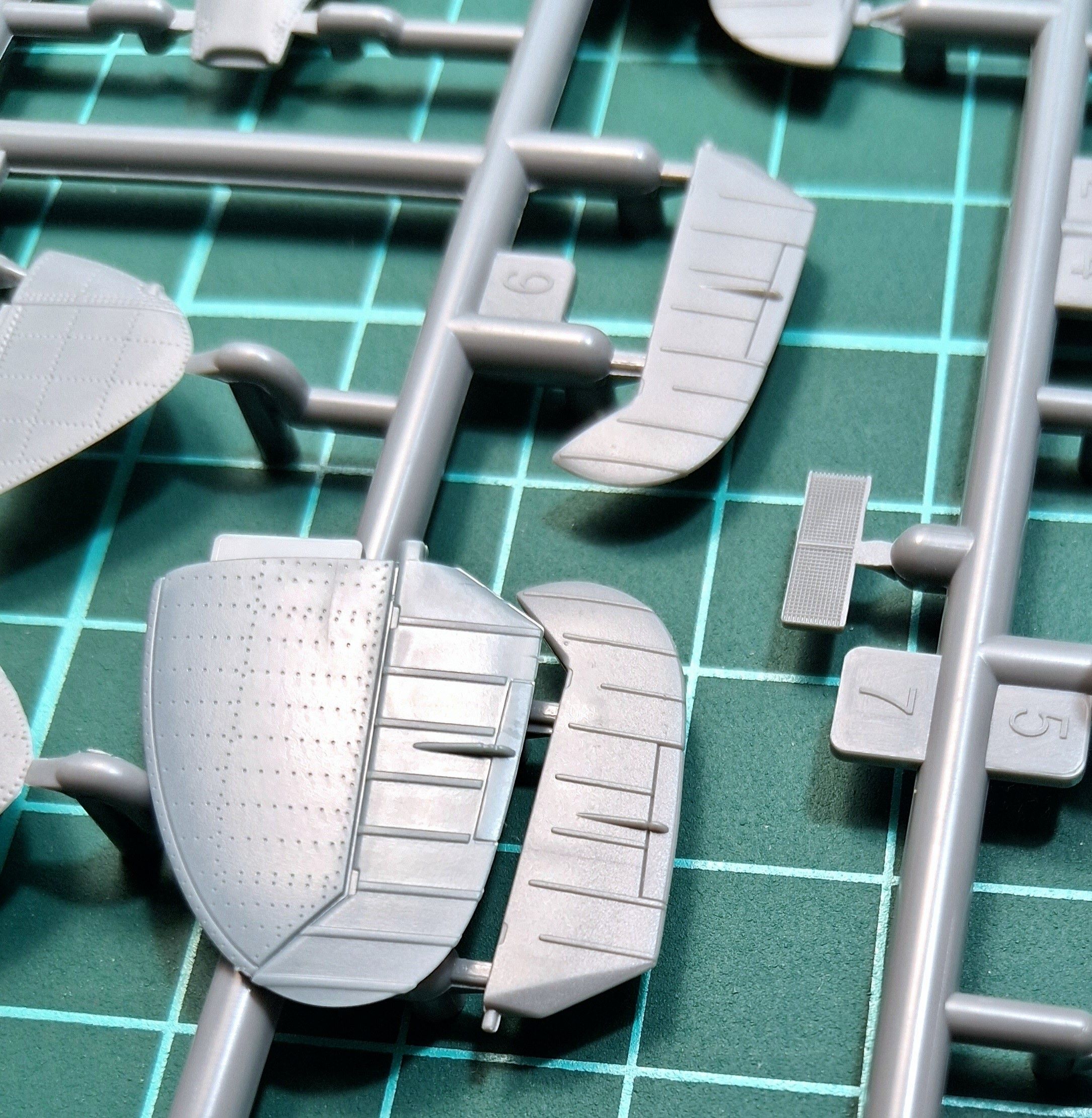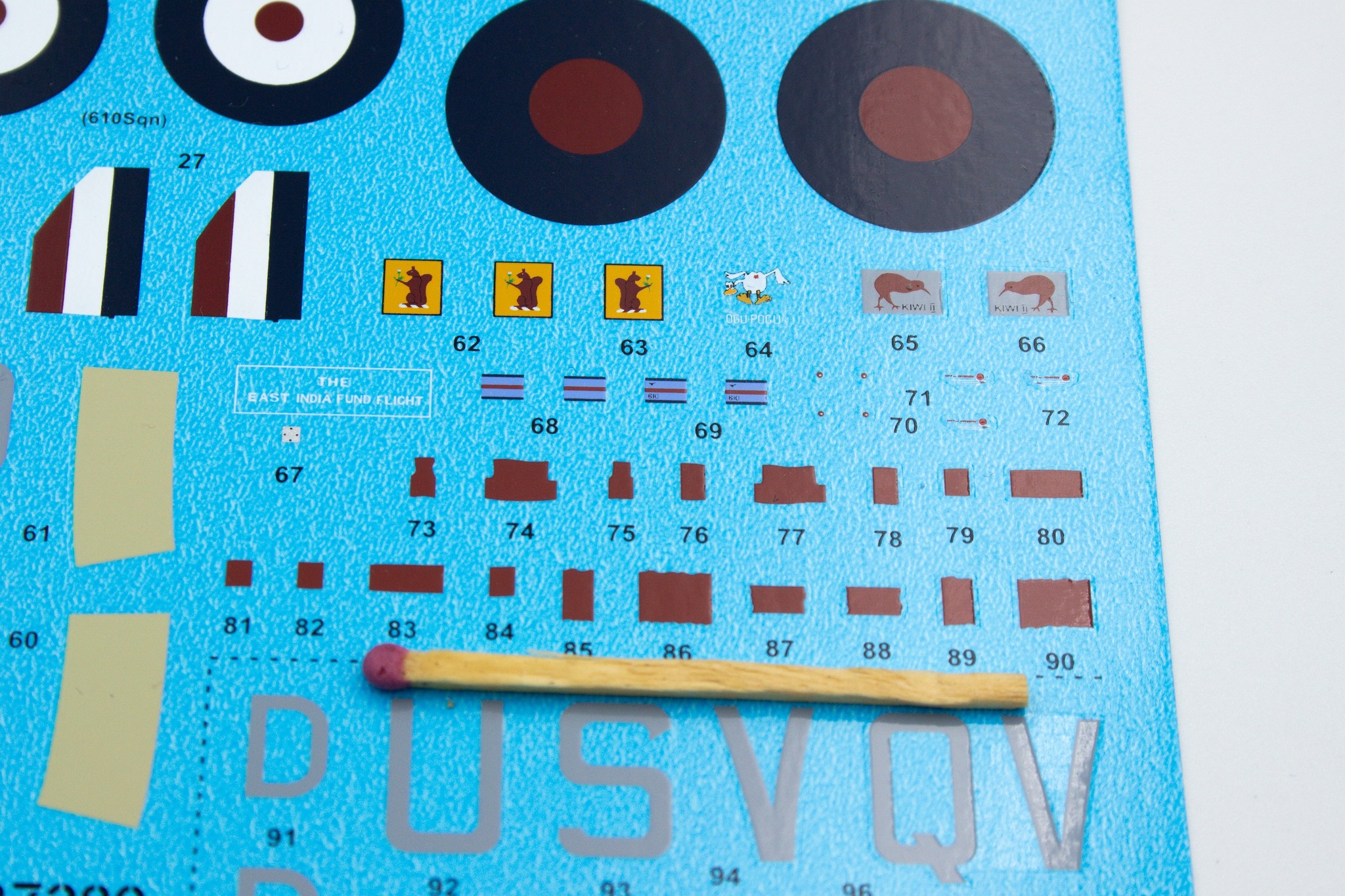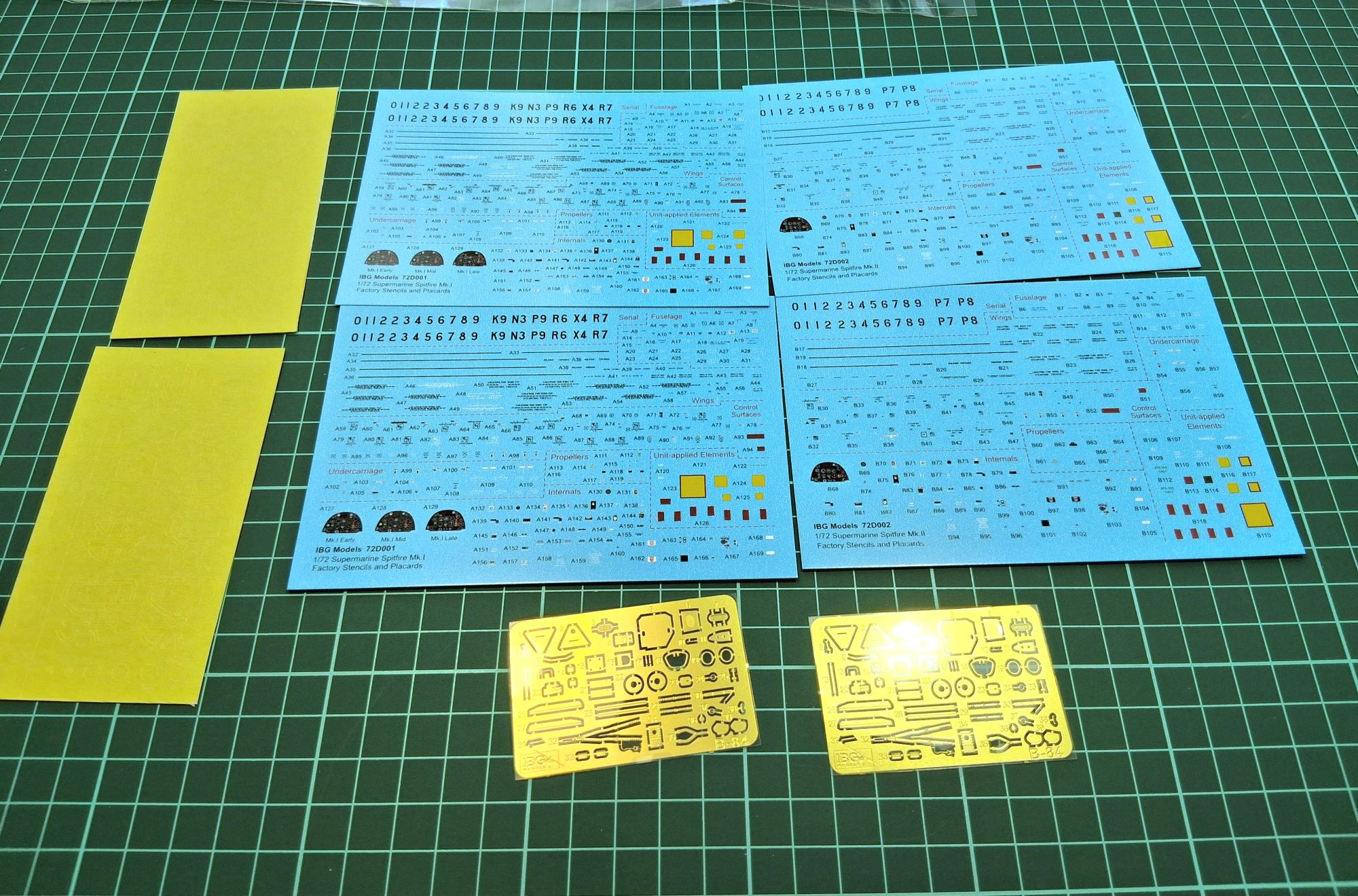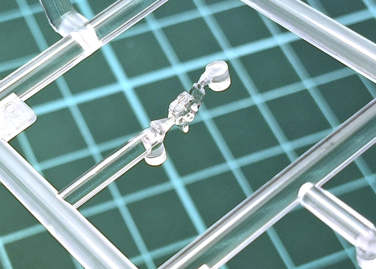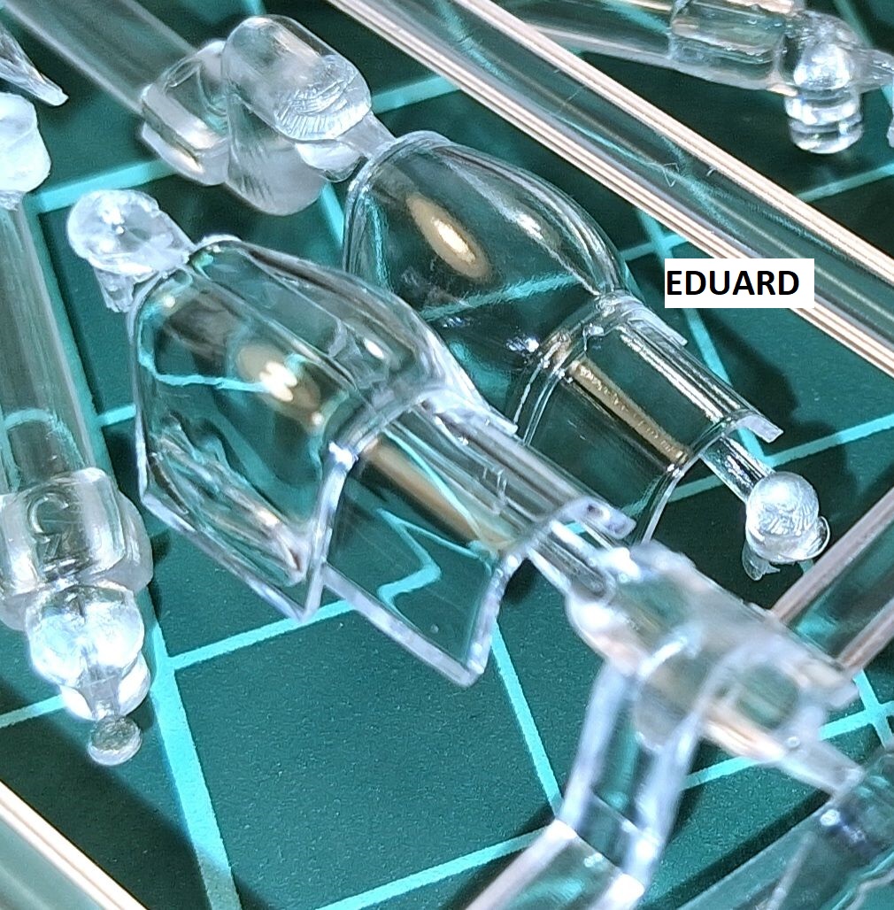 rámeček s čirými díly obsahuje řadu překrytů a variant čelních štítků, hlavní část je v pohodě mezi čirými díly jsou i dva typy GM-2 zaměřovačů, gyro zaměřovač, zkrácené oblouky křídla atp.