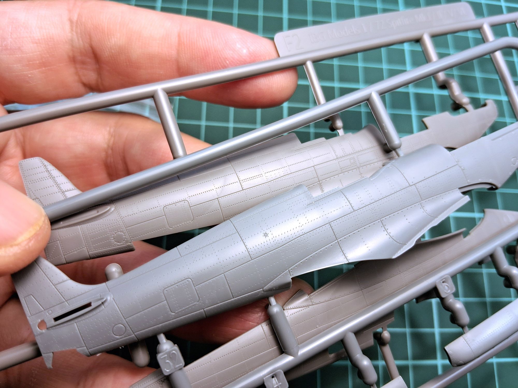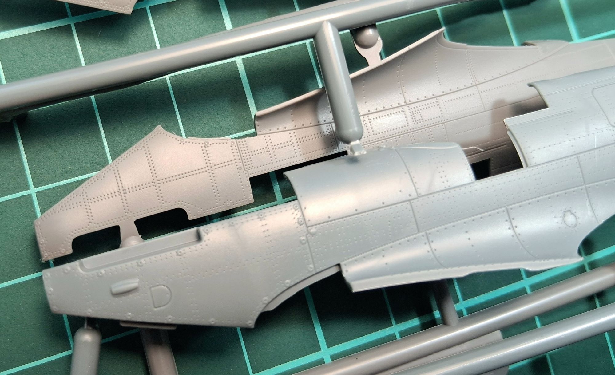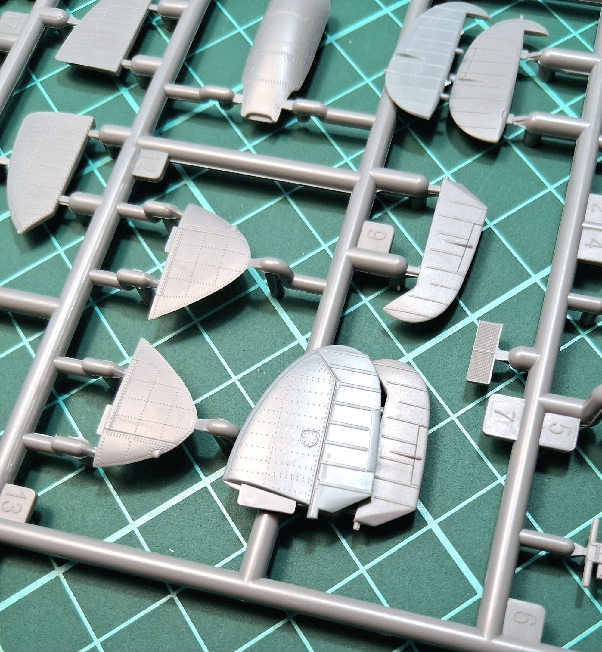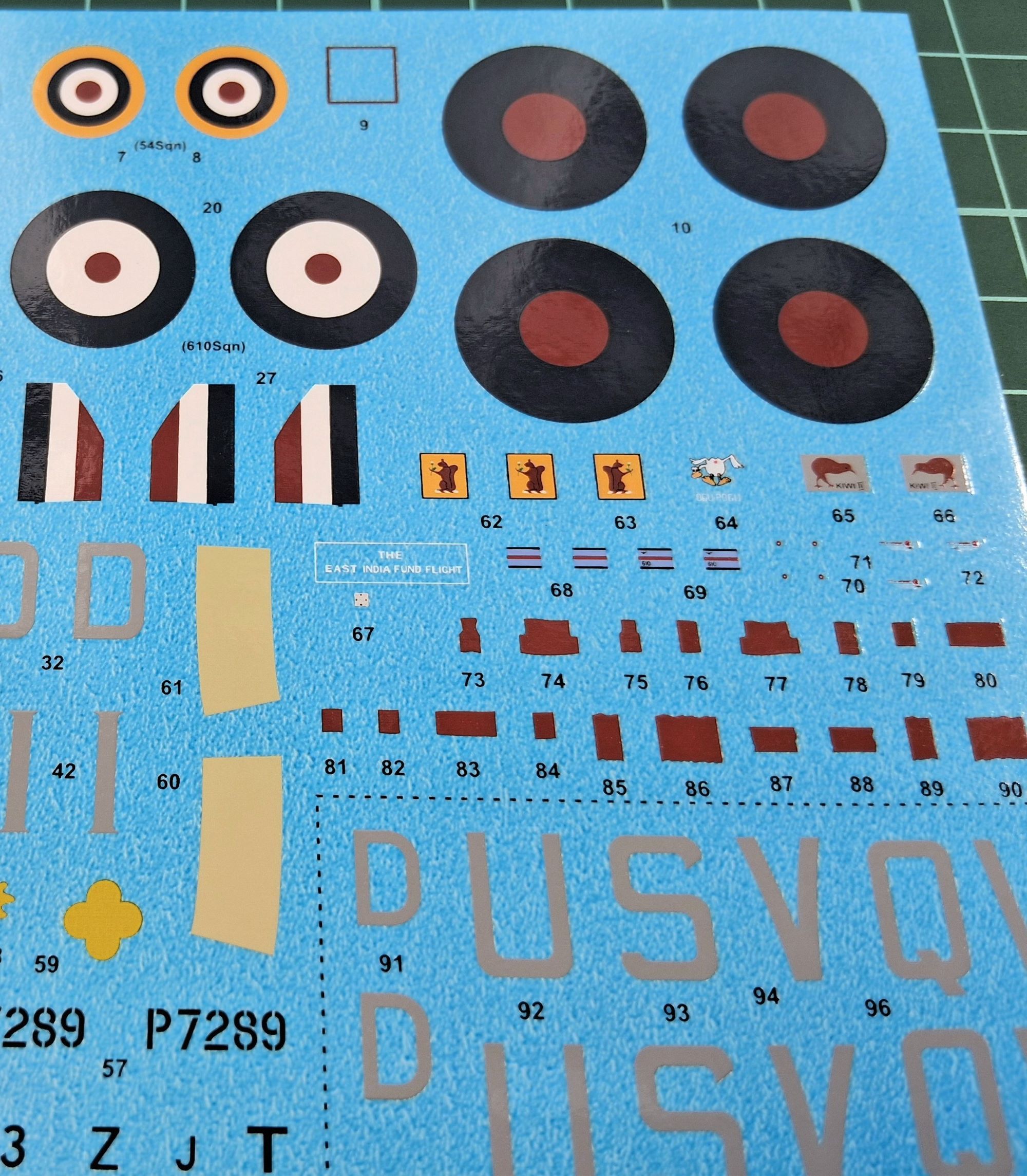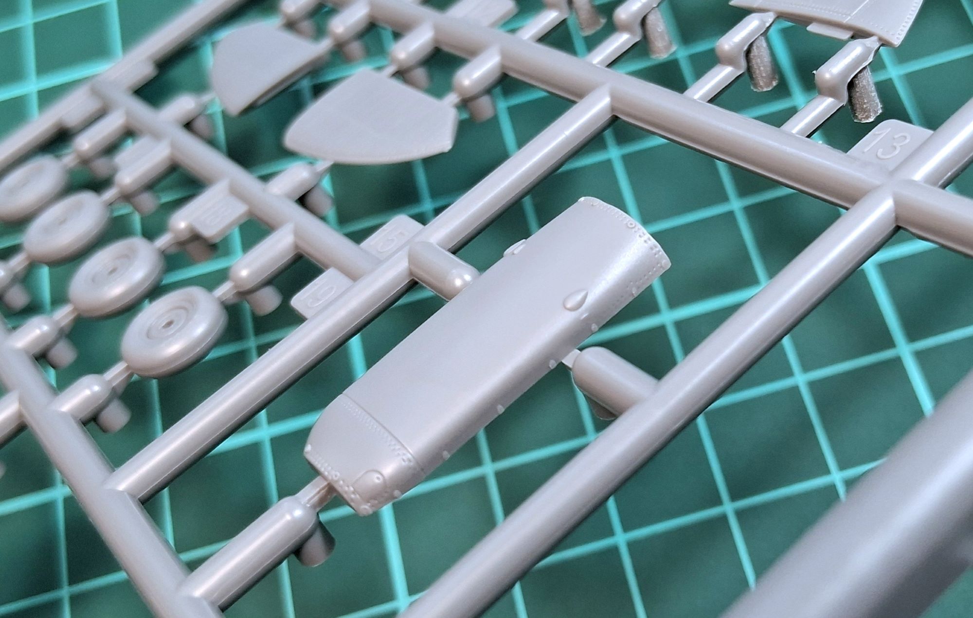 rámeček s čirými díly obsahuje řadu překrytů a variant čelních štítků, hlavní část je v pohodě mezi čirými díly jsou i dva typy GM-2 zaměřovačů, gyro zaměřovač, zkrácené oblouky křídla atp.