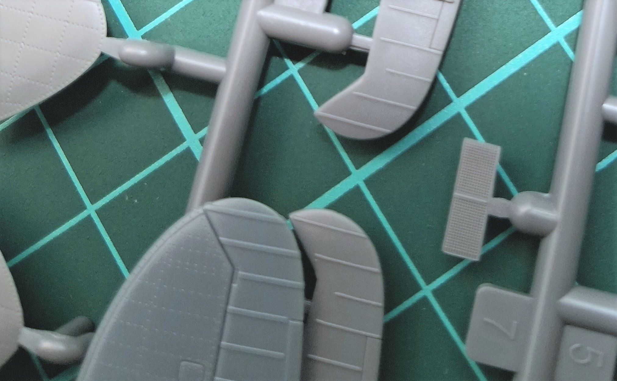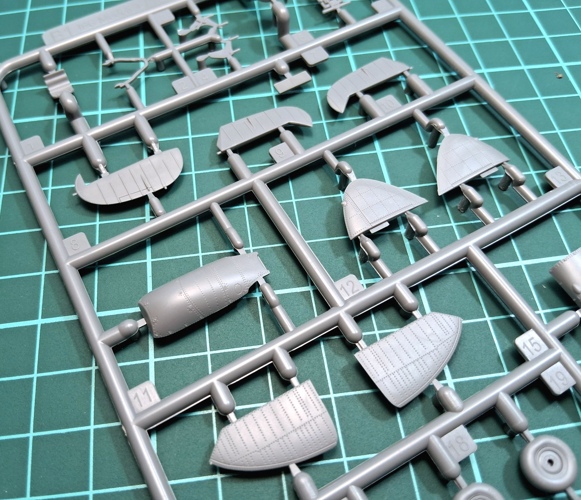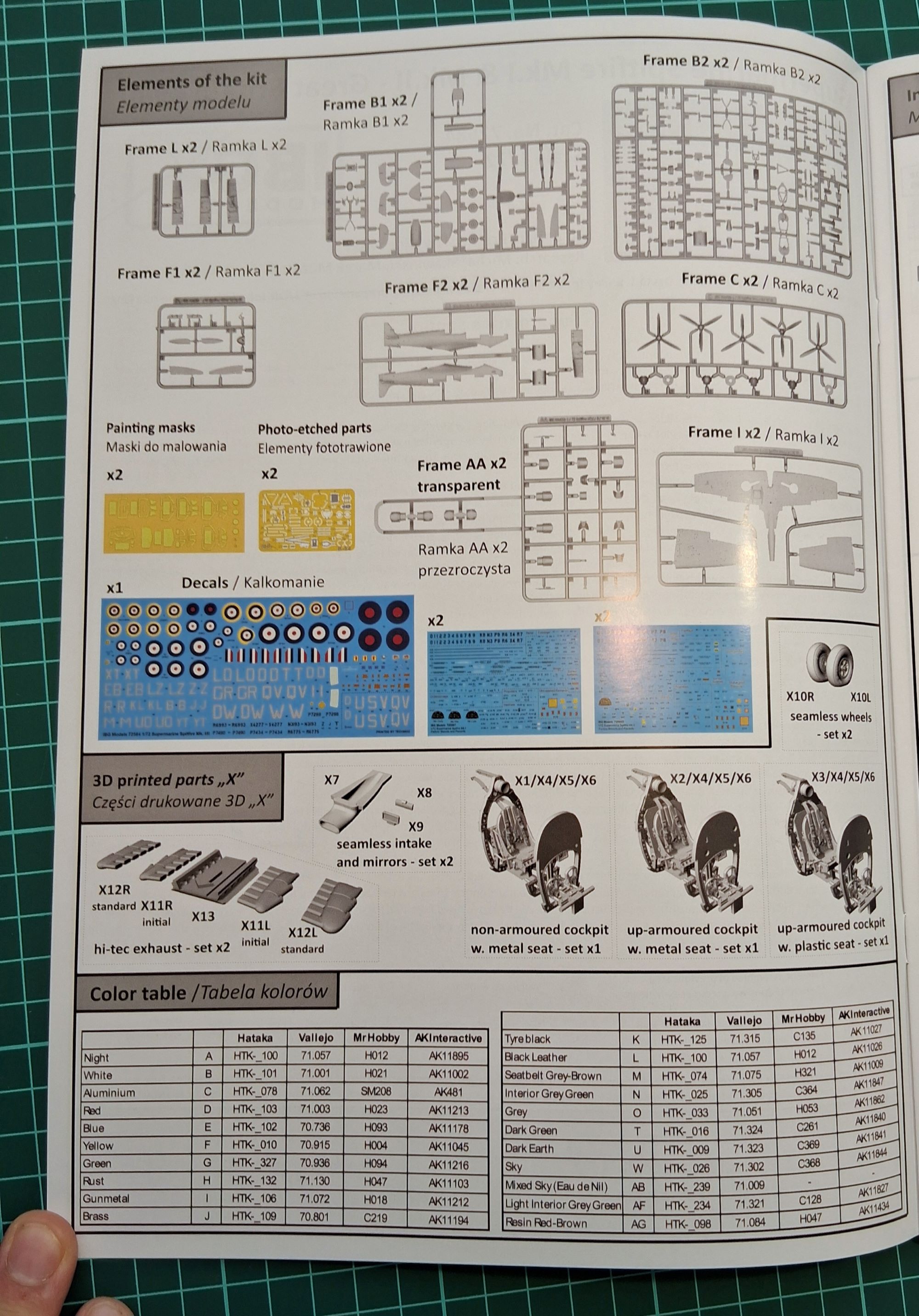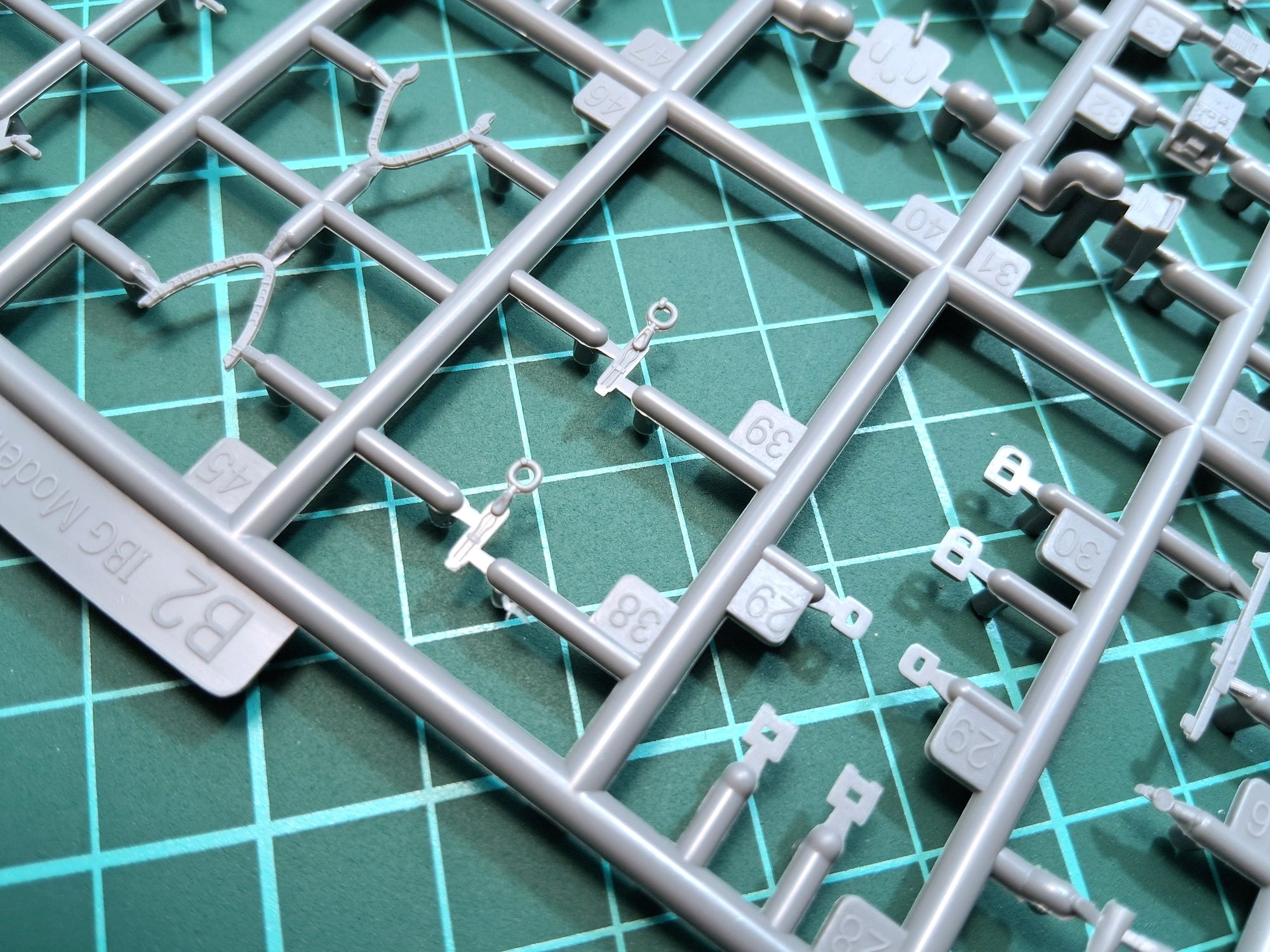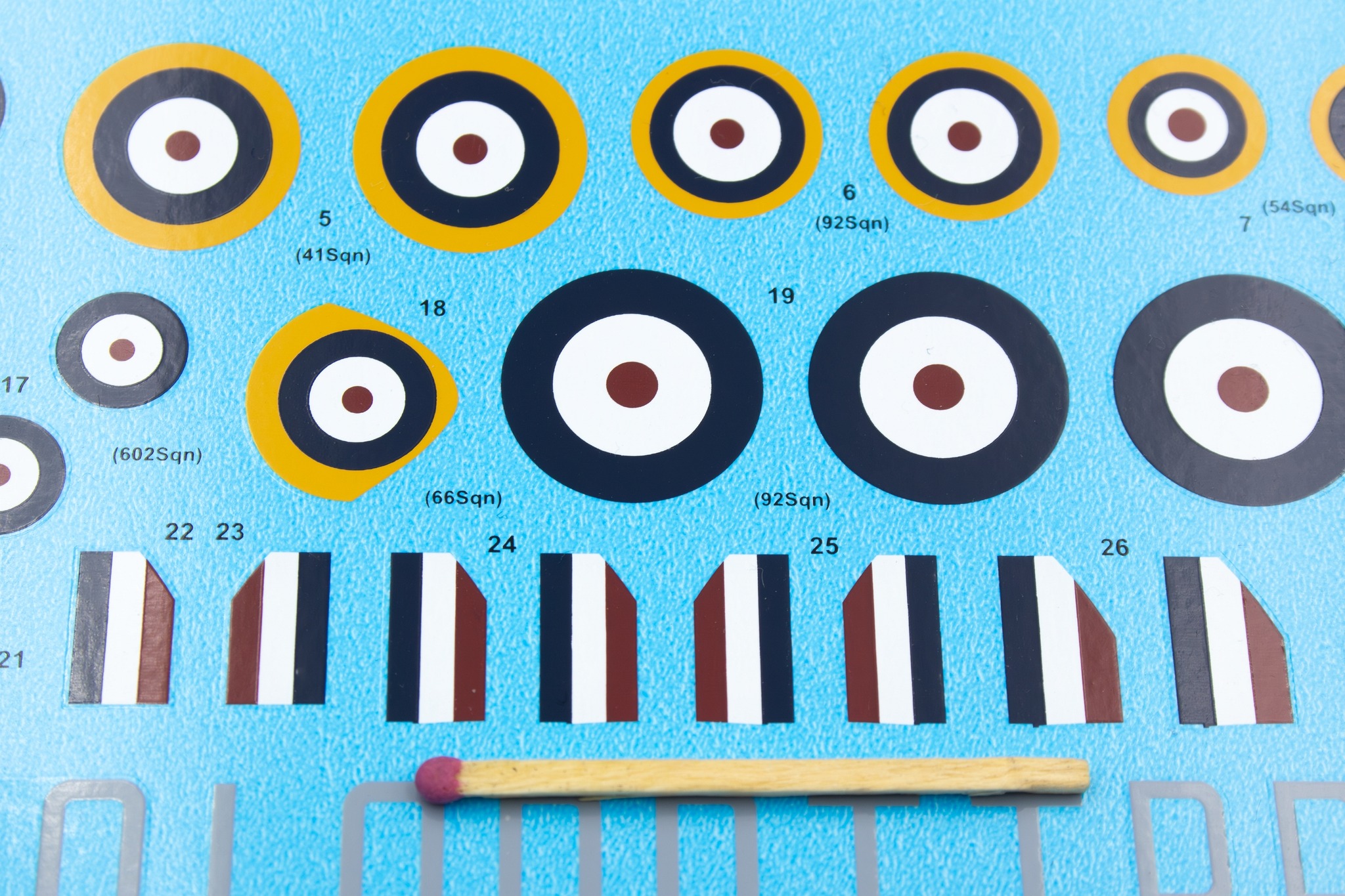 rámeček s čirými díly obsahuje řadu překrytů a variant čelních štítků, hlavní část je v pohodě mezi čirými díly jsou i dva typy GM-2 zaměřovačů, gyro zaměřovač, zkrácené oblouky křídla atp.