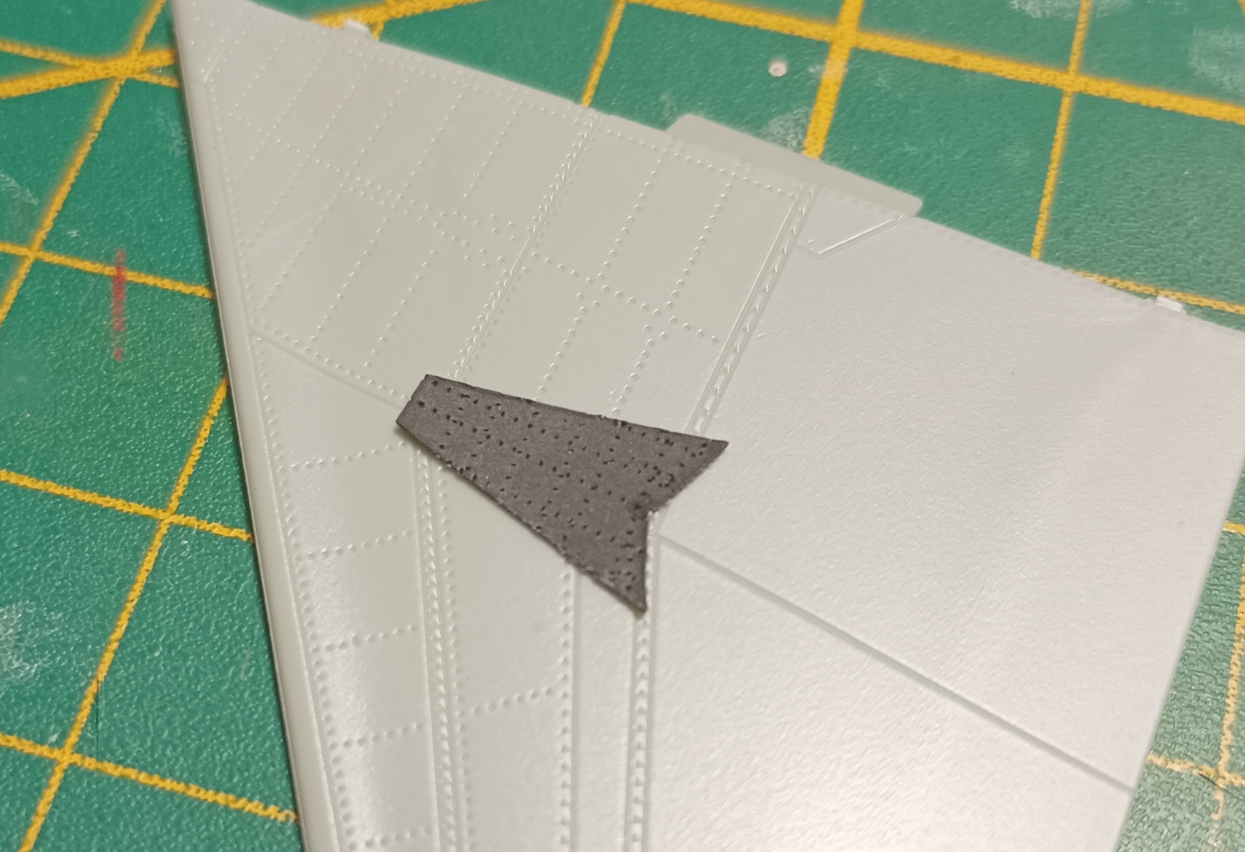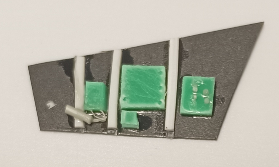 Tak jo. Trochu hrubé síly, malinko tmelu a jsou tam. Ještě jsem vyměnil připravené výškovky, protože návod chybně nabádá k použití slotových a doplnil vyztužení podle fotky z muzea.
