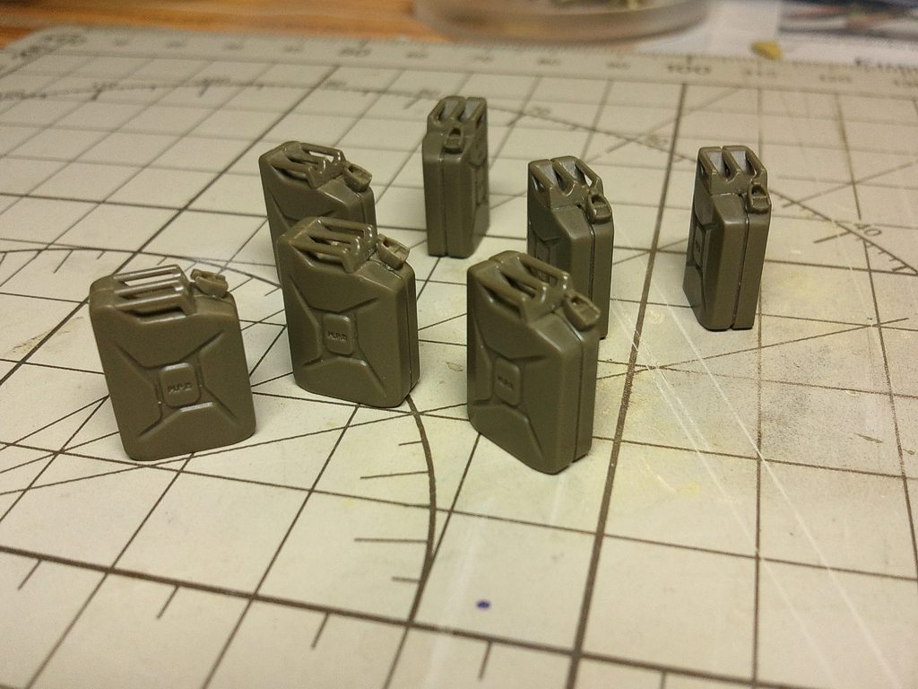 tak zase malý posun, co jsem dnes udělal...koupil jsem sety od Tamiye a Academy, prvni je prislusenství pro spojenecke jednotky II.sv., protoze jsem potreboval na Sherma, kanystry. Ty ze stavebnice byly sice izraelske, ale udelane vcetne drzaku nalisovanych na kanystrech. Ja tam budu davat drzaky z leptu, takze by to v tom vypadalo docela blbe a odbrusovat vsechny kanystry, tmelit atd....to fakt ne. Takze jsem zakoupil set, kde jou kanystry, batohy, celty, sudy atd.. Z tohoto setu jeste vyuziji prave ty batohy a nakombinuji je s batohy ze stavbnice.Dale ma koupeny zbranovy set od Academy pro kaliber 50a 30, ktere take budou na Shermovi, 50 bude na vezi a 30, pouze hlaven, bude couhat vedle dela, v delovem krytu vlevo po smeru jizdy.Zbrane jsou z x dilu a jsou velice propracovane, takze kdo nehce kupovat kovovou 50, tak toto je ideální, je to včetně zásobníků, pasu se naboji a take ruznych lafet a drzaku, zalezi zda jsou montovane na vozidlu ci volne.Kanystry vypadaji super, krasne detailni, musim je hodit do surfu, pak cerna ci black tire barva a drybrush. Sice je toho malo, ale nestiham ted...o:) ale ja se polepsim..o:)