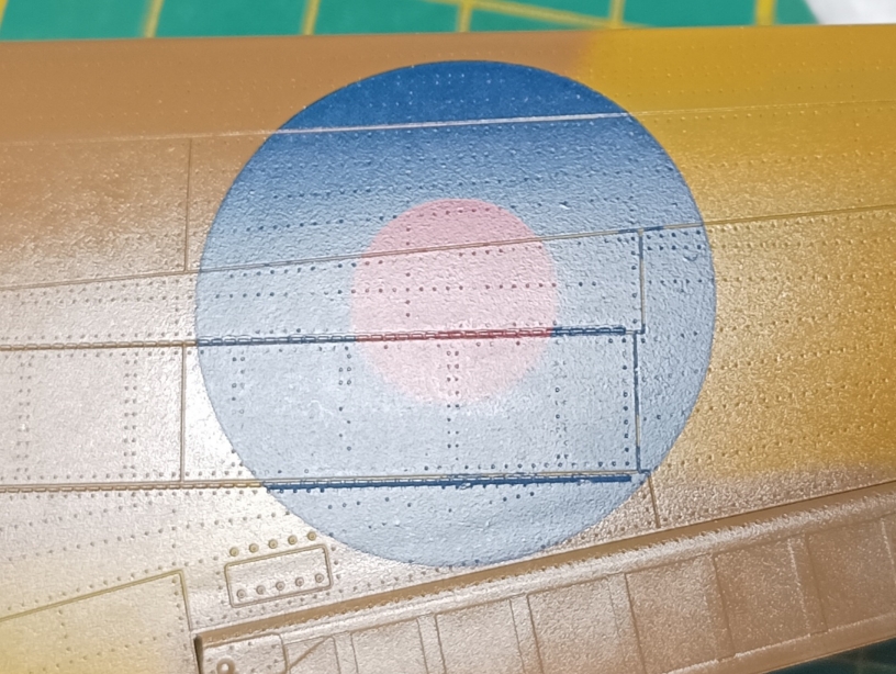 Hele, ty máš šikovnější větve, tak to někde bokem na něčem ozkoušej a uvidíš. Já pokračuji - horní+ spodní kokardy naneseny bez laku, trupové odmyté po víc, než dnu benzínem. Pak jsem to píchal zastřiženým štětcem, až to vlezlo do nýtů. V rytí se to samozřejmě vydrolilo, ale po washi to bude +- jako provozní opotřebení. Kódy a tlama zatím včetně laku, a asi to nebudu riskovat a nechám tak.