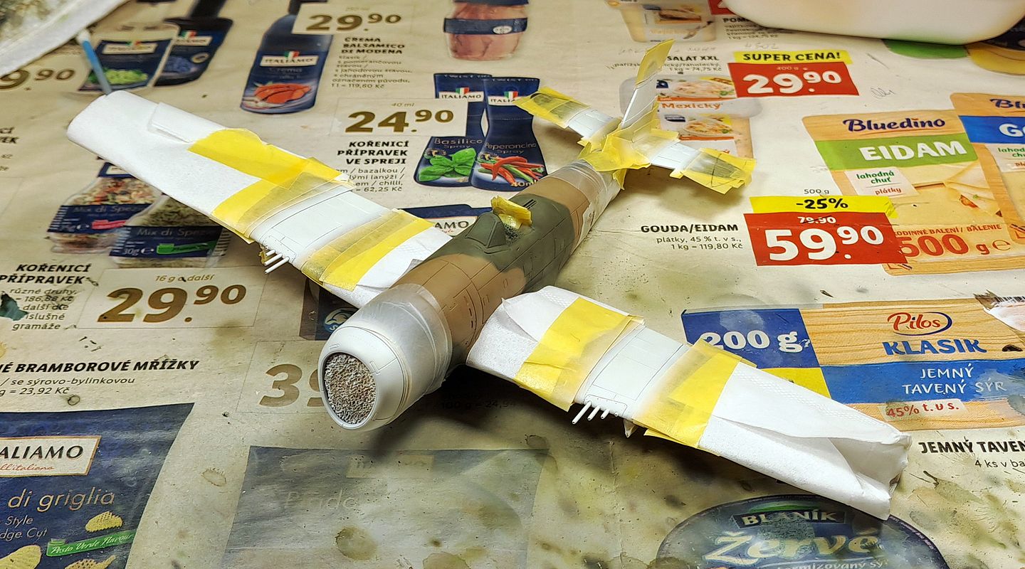Obdivujem tých, čo dokážu takto striekať kamo, že najprv nastriekajú len potrebné plochy svetlejšou farbou a potom tmavšou. Ja musím vždy tou svetlejšou nastriekať celý povrch, potom prekryť maskami a nastriekať tmavú farbu. Už viackrát som to skúšal takto postupovať ako ty, ale nakoniec som zase skončil pri pôvodnom postupe.