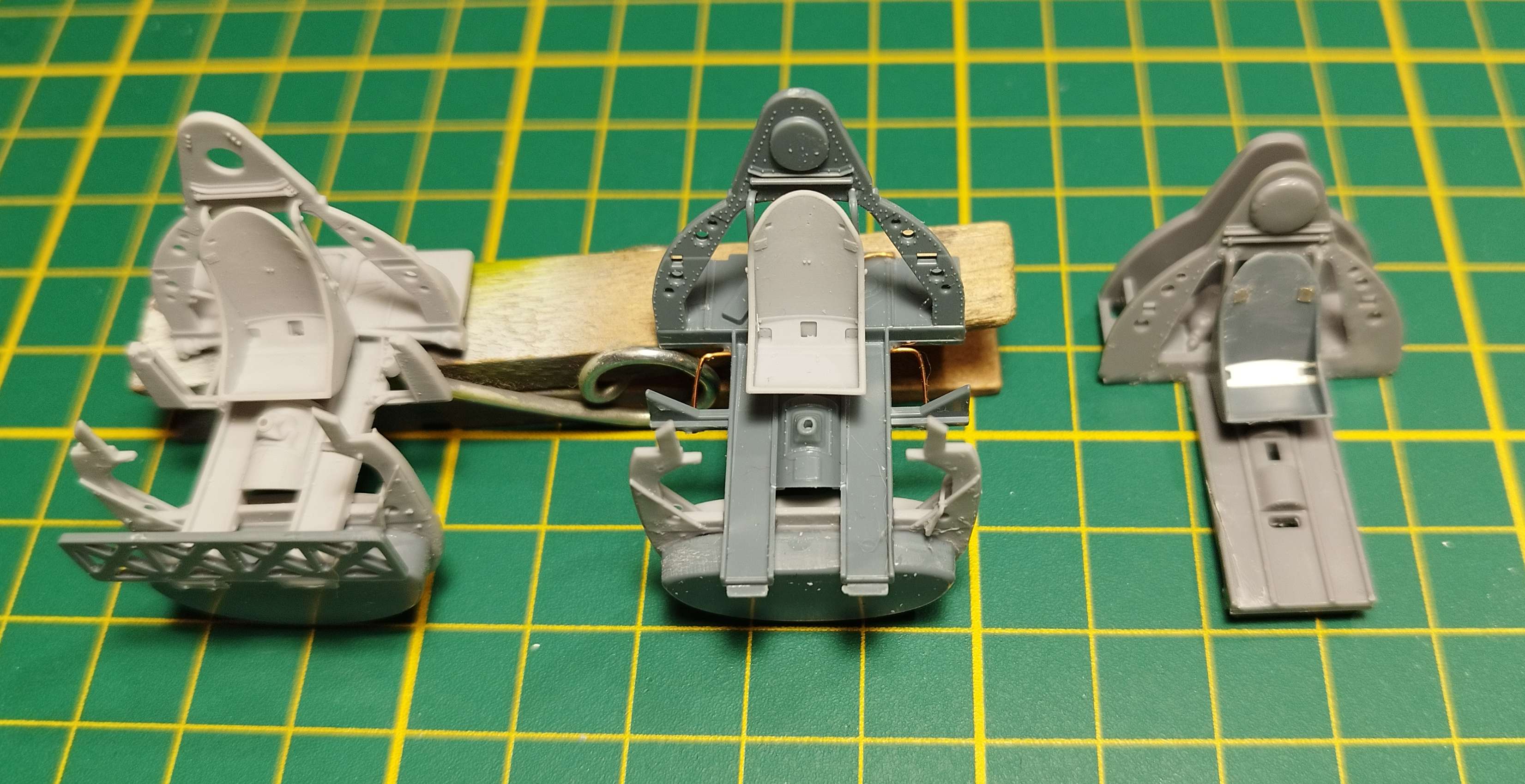 Kokpity před barvou - zleva doprava Brassin, Eda plast + Brassin sedačka, upravená Tamka + sedačka z Edy