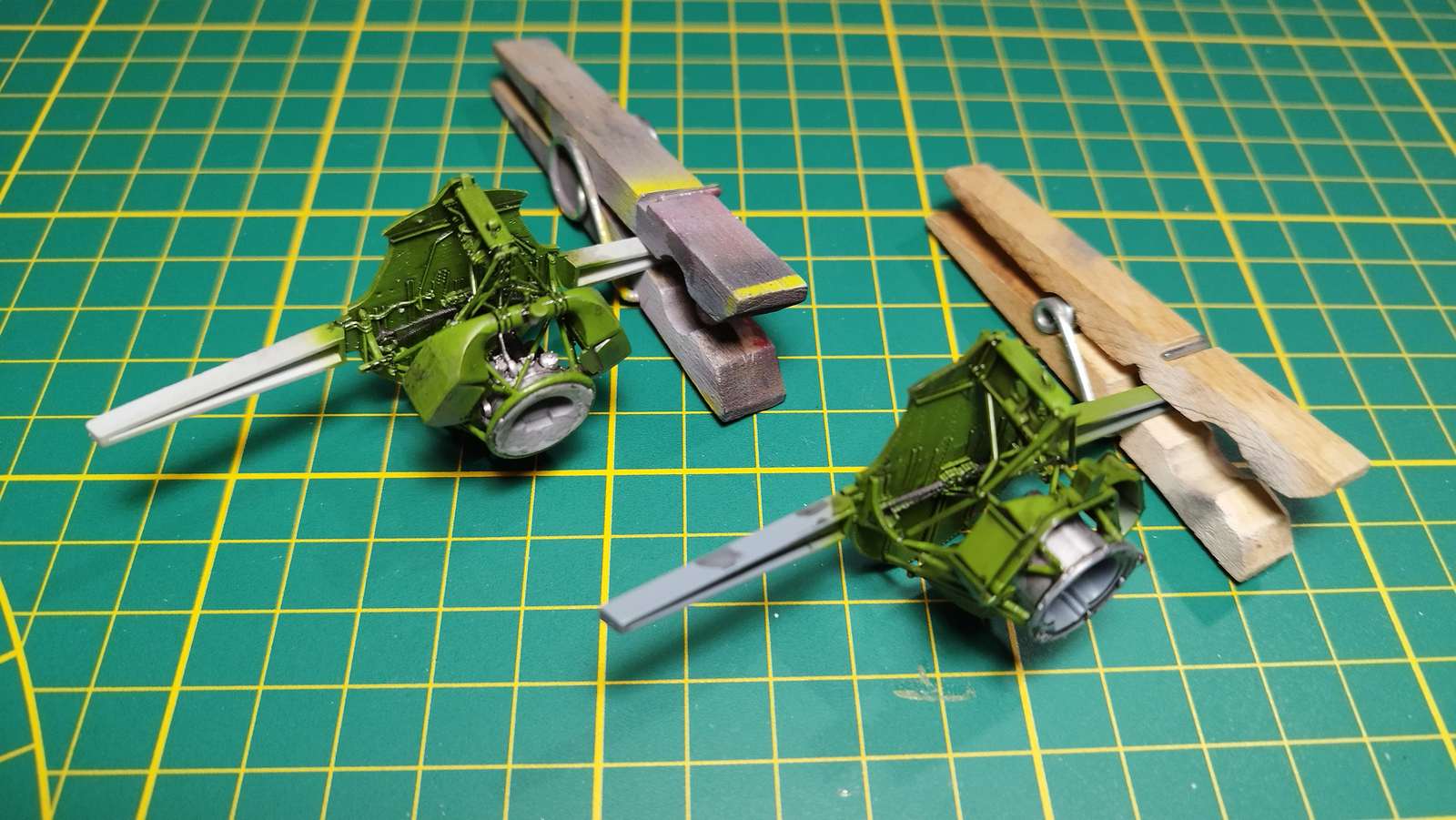 Papoušek odekálován, oba FM-1 nahrubo hotovy... Tmel na spoji křídel a trupů není zapříčiněn stavebnicí, ale rukama :lol: