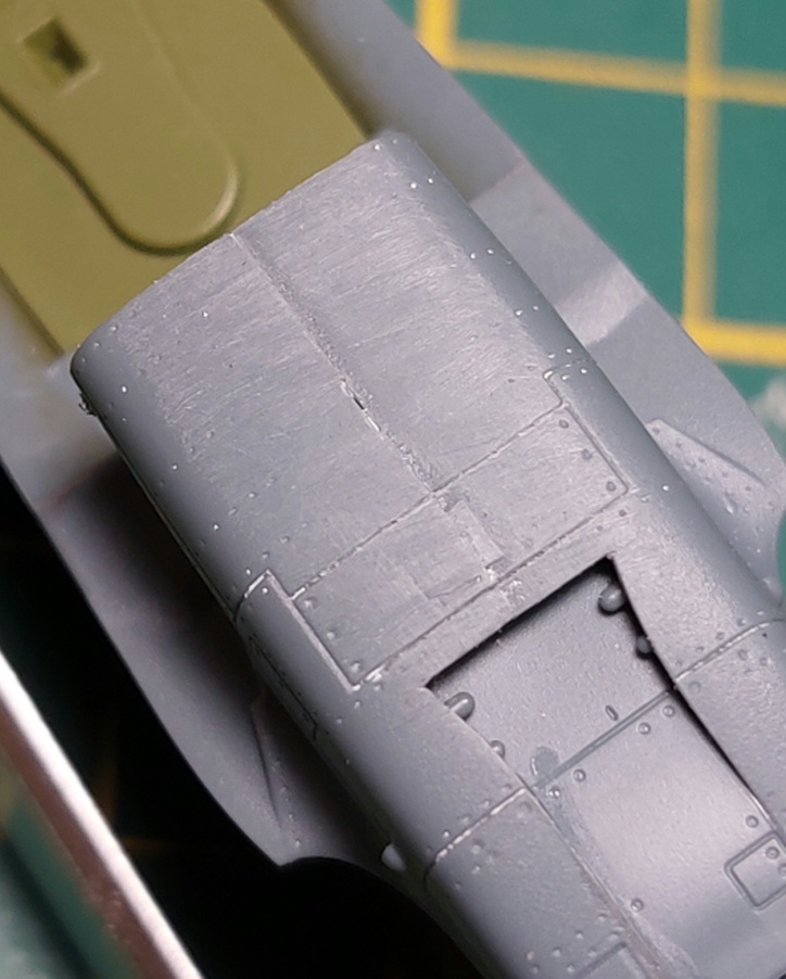Jeňyku, mám pocit, že to tmelení na horní straně čumáku bylo zbytečný, bo tam má být linka paneláže. A mám taky pocit, že VlaŠu někde říkal, že to mají udělané tak, aby tam ta linka po slepení zůstala. Ale to si fakt nejsem jistej. Možná jsem si to jen idealisticky vysnil.