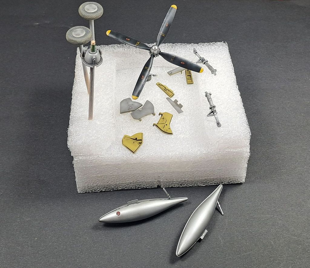 Mám to ve finálním laku a nachystal jsem si nějakou tu bižuterii. Trošku to ušpiním, domaluju nějaké drobnůstky a můžu kompletovat. A ještě musím najít a opravit překryt kokpitu, který jsem při odlepování dorval jak samici. :lol: