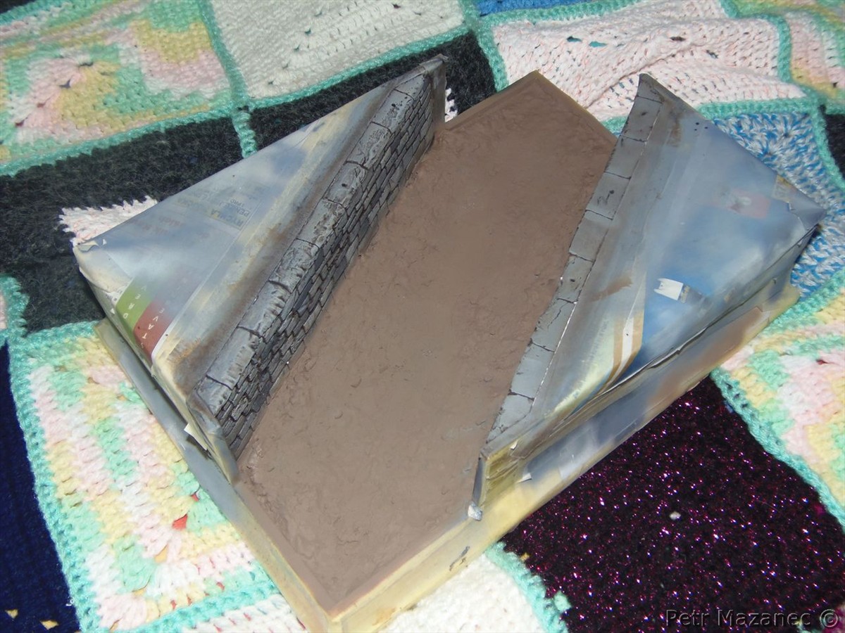 Tak terén už je hotov.Dnes mi přišly od Artura poslední (snad) potřebné věci na dioramu.Ještě jsem stihl nastříkat jedno zábradlí a zalakovat terén matem.