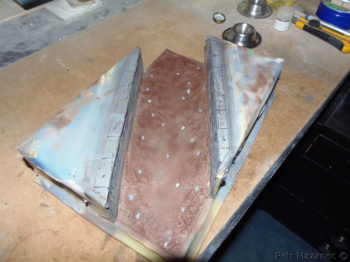 Pěknou podobu to získává, ale přehodnotil bych ještě rozhodnutí mít diorámu bez lidí; ten s přilbou, co je na úvodní fotce, by to krásně oživil