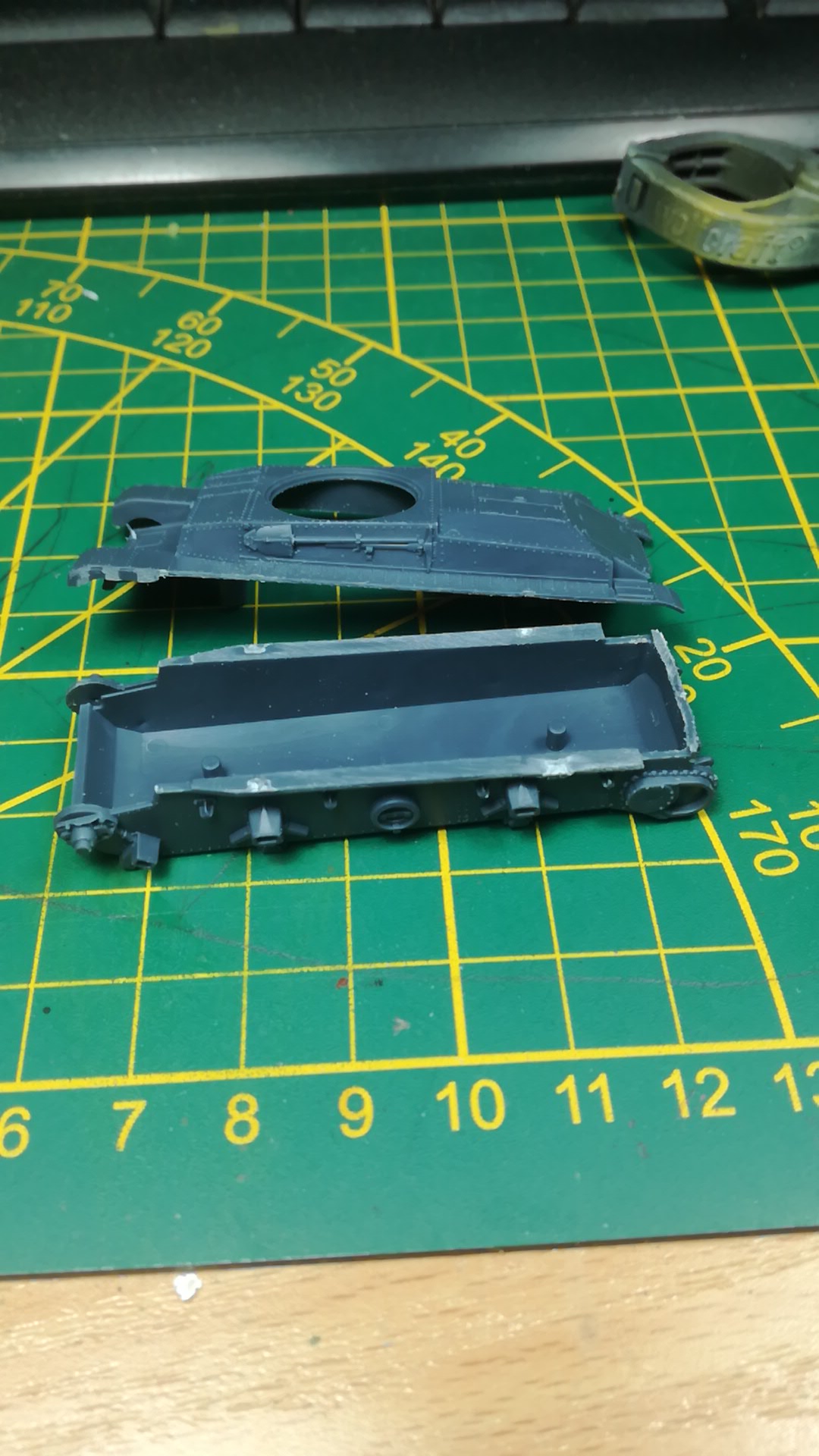 Tahle krabka na mě tak smutně koukala, až jsem neodolal a vrhl jsem se na ni. Je to jednoduchá stavebnice a za ten plast a dělící rovinu v pásech bych Polakům nakopal prdel. Strašně špatné se plast opracovává.