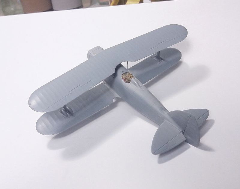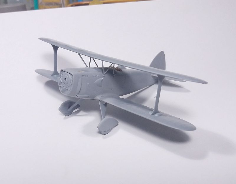 Můžu potvrdit že spodní křídlo je silnější než na trupu. Nosníky jsem nevytvářel, po přilepení spodního křídla jsem vše korigoval a celou sestavu s vrchním křídlem jsem lepil velice citlivě, abych mohl kterýkoliv díl znásilnit do správné polohy. No uvědomil jsem si, že dvouplošník jsem dlouho nedělal. Myslím že model pasuje vcelku slušně a limitem byly "ruce". Nakonec bych řekl že se jakž takž zadařilo. Vzpěry u trupu jsou o desetinku kratší, ale to mi spíše něco nevyšlo. Navíc konečná geometrie posezu nejde srovnat, dokud nedám zpevnující výplet mezy podvozkové nohy, které pruží a vahou se rozjíždí.