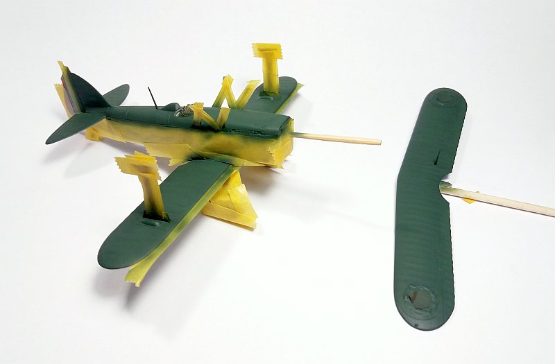 Nyní odlomím vrchní křídlo, dolepím drobotinu a model budu takto separátně barvit.