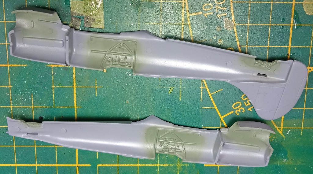 U Academky jsem vkládal tenký proužek plastu ze spodu trupu a za kabinou pilota, abych trup rozšířil a pasoval mi přechod trup vs.křídlo.