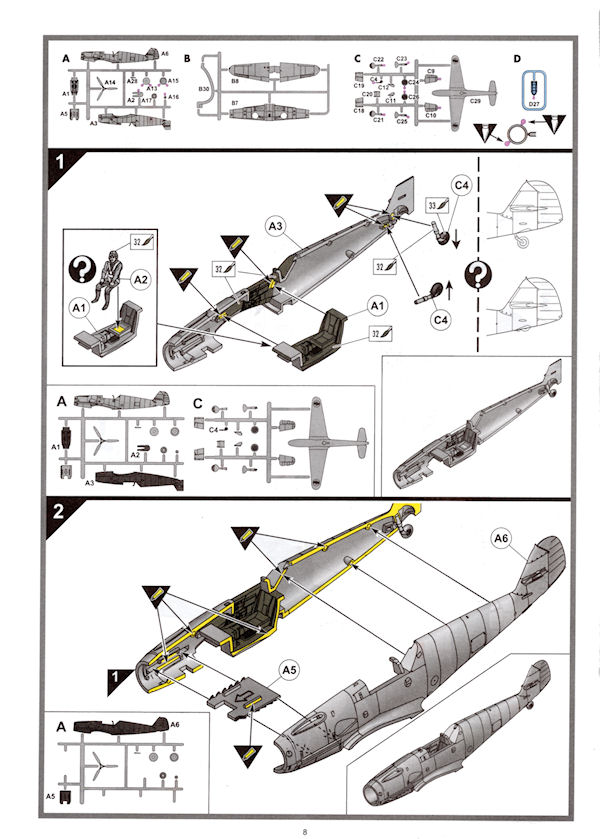 Tomu odpovídá i stavební návod, kdy u každého kroku je zobrazený patřičný rámeček s výrazně označenými díly které se použijí a ty, které se použily už na rámečku prostě nejsou.