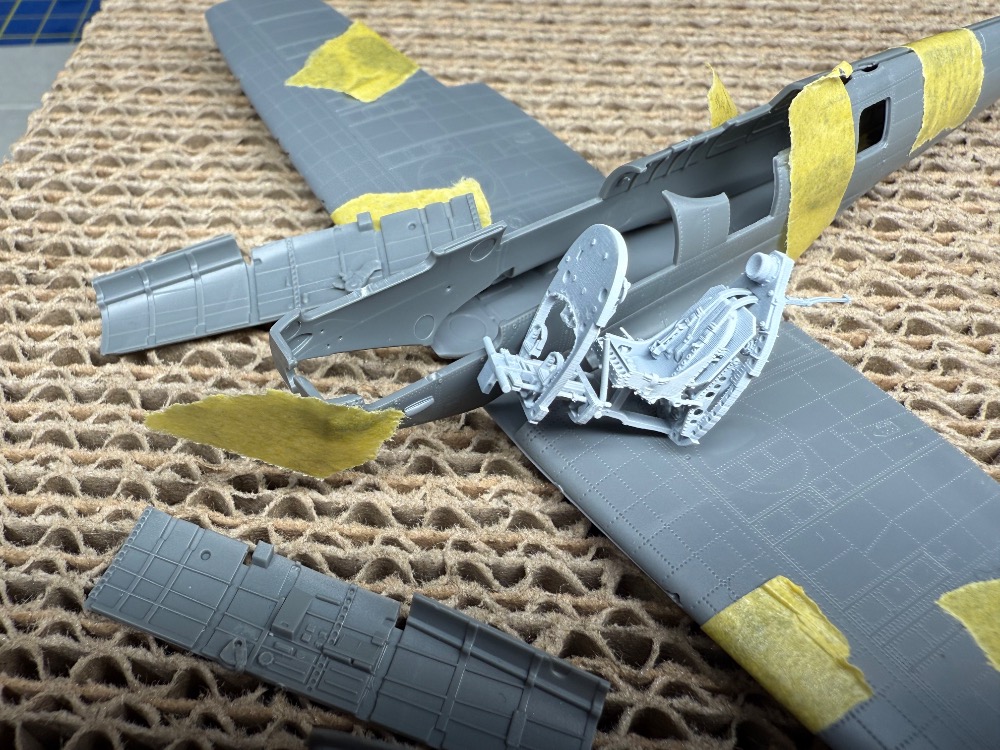 Aktuálně slepený trup a křídla. Čeká mě broušeníčko a obnovení rytí. :(