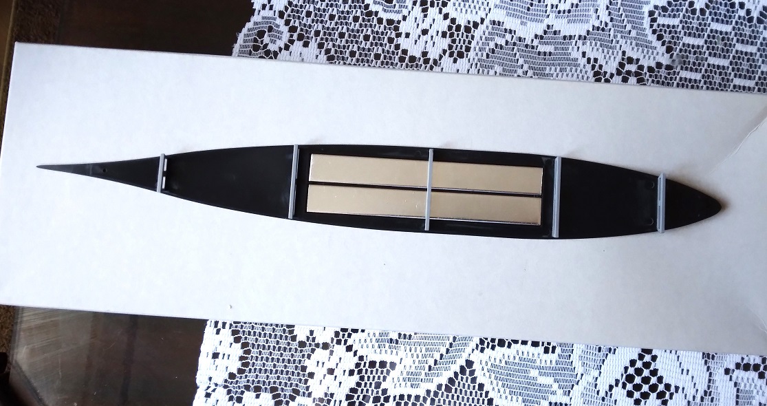Tamiya má v modelu závaží, 2 ocelové plechy 125 x 15 x 2 mm. Důvod je podle mne jasný, už nyní se mi s trupem hůř manipuluje a to jsem ještě ani pořádně nezačal. No a pokud mi, nedejbože, upadne, což je u mne celkem reálný předpoklad, tak aby se trup a hlavně příď co nejvíce roztřískaly...