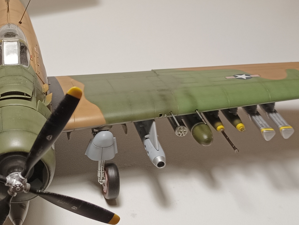 Tak cíl účasti ve skupinovce splněn. Nejvíc mě sejří zamlžená kabinka a poněkud tmavší šedá na spodku. Vrch je AK RC dark earth s bílou gunze a RLM 82/83 gunze céčko. Nějaké stíny, oleje a tak. Celkem se mi ty odstíny na SEA camo líbí.