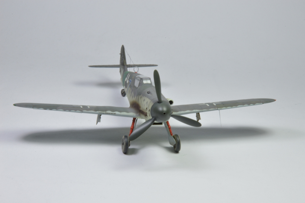 Velitelem III./JG 27 byl od října 1944do konce války Rakušan Hptm. Dr. Peter Werfft (26 v.). Ve stejném měsíci přezbrojila na Bf 109K-4. Od února jej však v této funkci zastupoval velitel 12./JG 27 Oblt. Emil Clade. Stejně jako Werfft, soužil i Clade po celou dobu války u JG 27. Dosáhl celkem 27 vítězství. Během své služby v Africe u II./JG 27 napadl se svým Schwarmem 7. srpna 1942 ve spojeneckém týlu osamocený nízko letící dopravní Bristol Bombay z No. 216 Sq. RAF. Podařilo se mu jej sestřelit a na zemi stroj zničil Uffz. Schneider, jemuž bylo přiznáno vítězství. Na palubě zahynul velitel britské Osmé armády Lt. Gen. W. H .E. Gott. Na jeho místo byl jmenován Lt. Gen. Montgomery, pro nějž se Gottova smrt stala zásadním milníkem kariéry. Clade byl do vedení 12./JG 27 jmenován v listopadu 1944 a vedl ji během bojů na západu Německa až do jejího zrušení na počátku dubna 1945. V posledním měsíci války velel I./JG 27. Po válce pracoval jako pilot aerolinek, věnoval se sportovnímu létání a v roce 1996 vydal paměti. Trup byl pravděpodobně natřen barvami RLM74, 75 a žlutošedou variantu RLM76. Svislé ocasní plochy jsou natřeny tmavší variantou RLM74 a 75, RLM 74 měla odstín do zelena. Křídlo bylo zbarveno světlejšími odstíny RLM 74, 75 a 76.