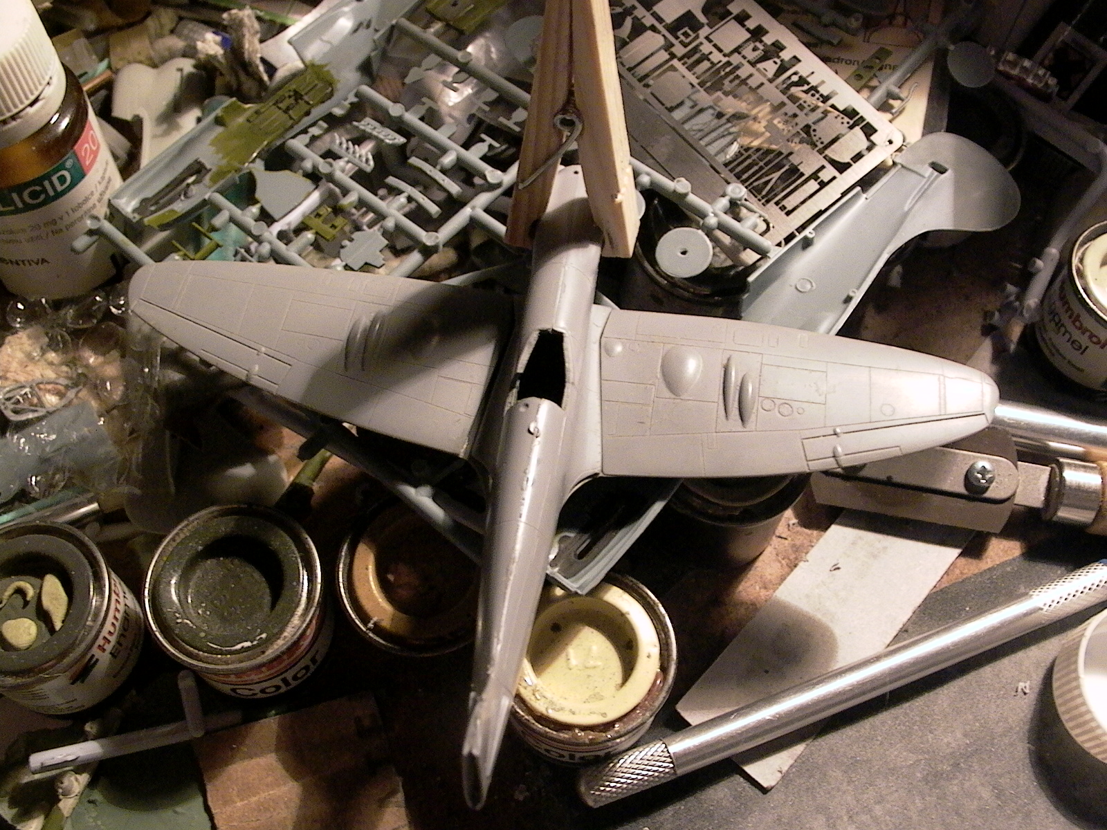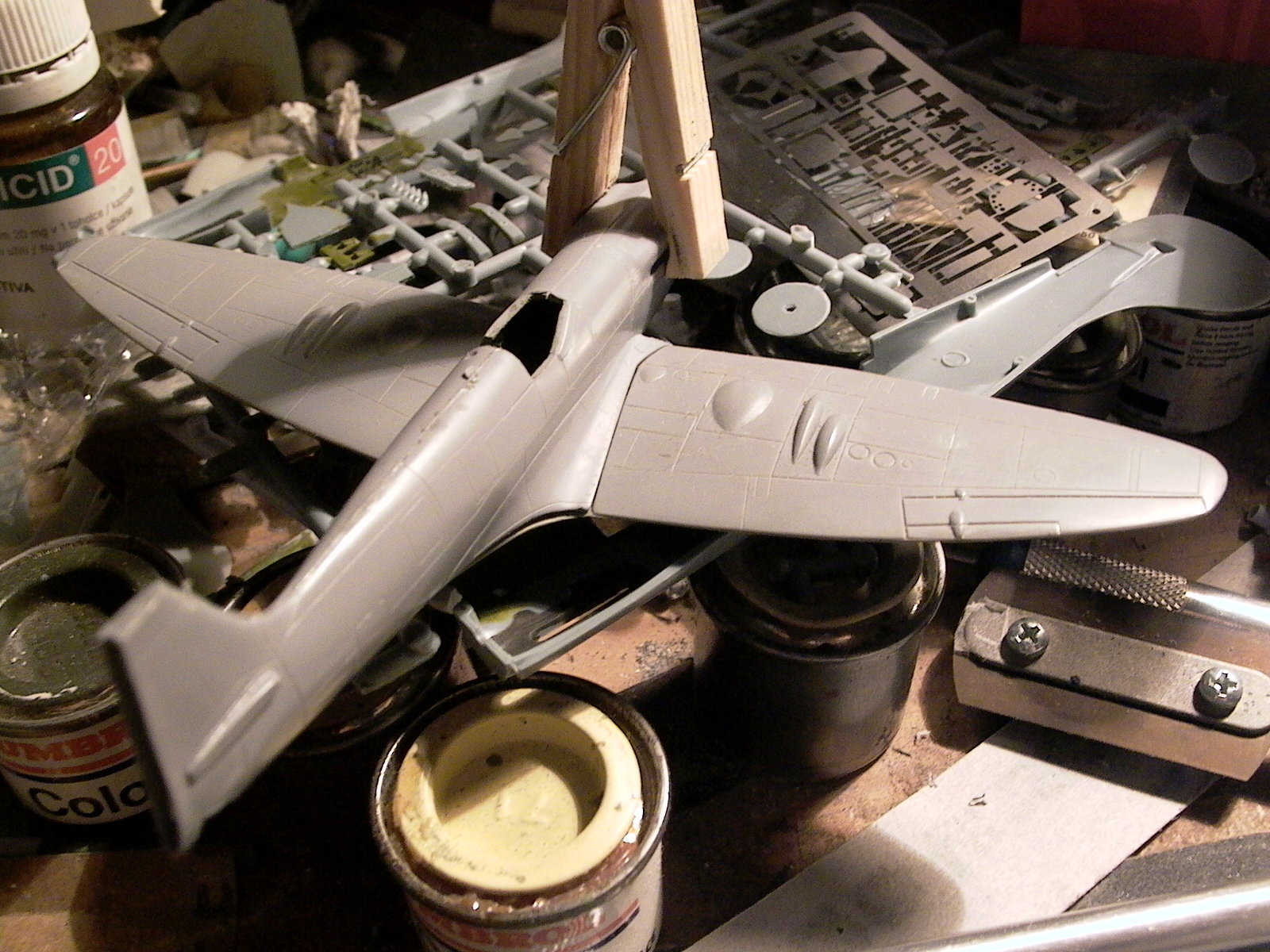 Tak jsem cvičně přeměřil trupy XVIII, IX (sword), IX (fix), a jak se zdá, XVIII, 22/24 mají trup o něco tlustší, než by měl být (nikdo aspoň nezpochybnil rozměry trupu u kteréhokoli z těchto spitů). Ještě změřím proti Fujimě a XIX, ale výsledek asi bude stejný. Chybu vidím v křídle, o jehož přípravě mi kdysi P.M. vyprávěl.