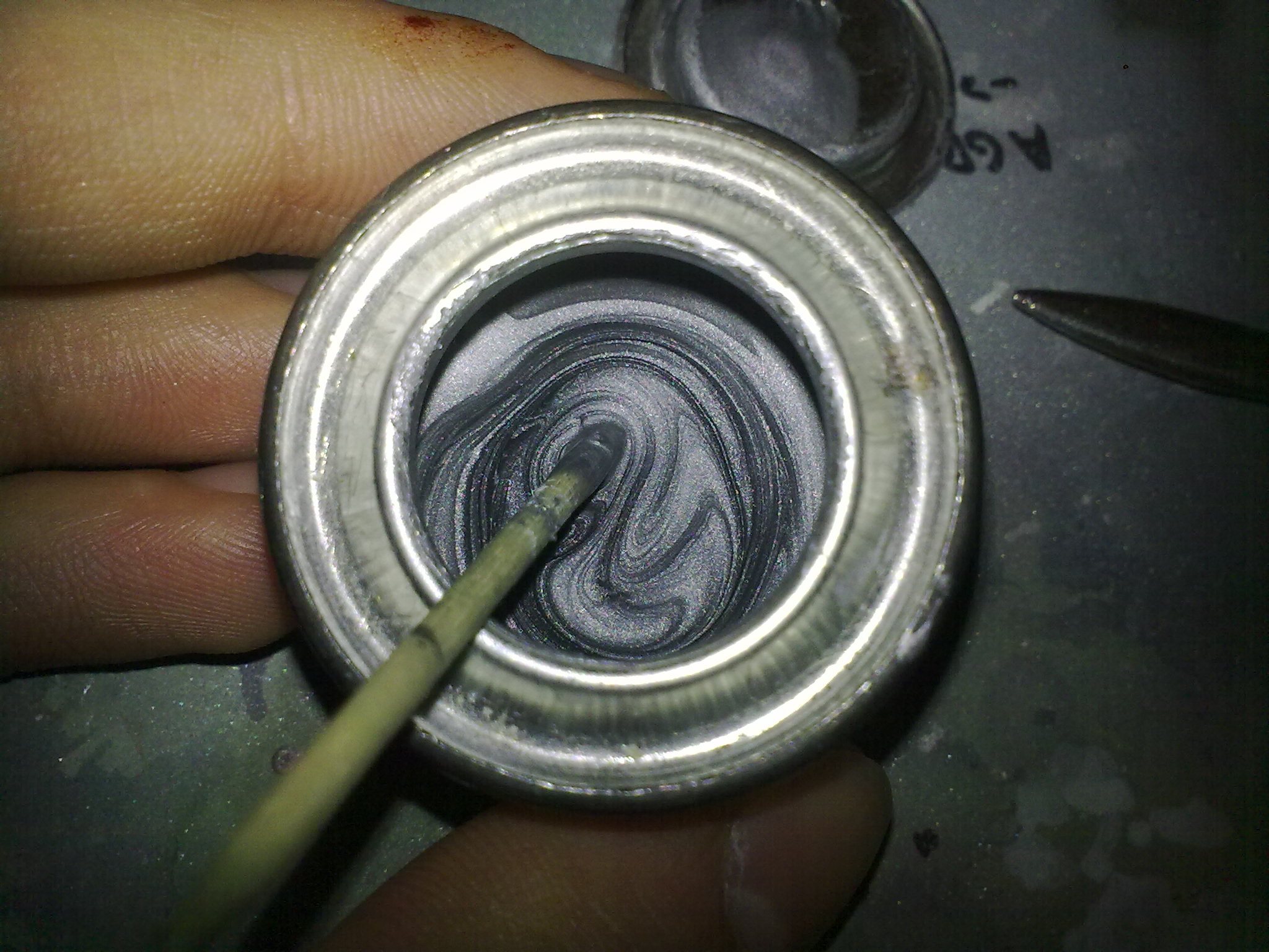 V pištoli je už nariedená. Však som to aj písal. Ja teraz striebornú používam iba na odhalenie škrabancov a nerovností na Ki-61 viď. stavba. Ja len že keď bude staviať celostrieborný P-51.