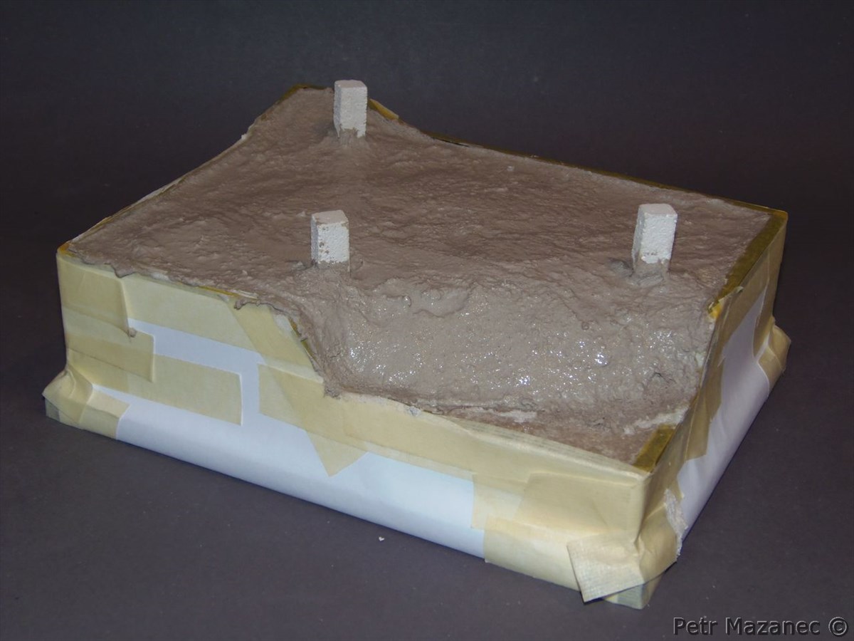 Děkuji,terén je ze směsi akrylátového tmelu na sádrokarton smíchaný s nadrceným kočkolitem a prosátou hlínou.Na fotce to je čerstvě nanesený a takový nic moc,dneska jsem to dolaďoval,pak ukážu foto.