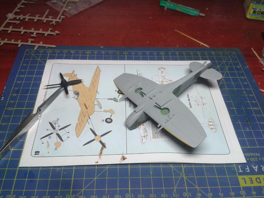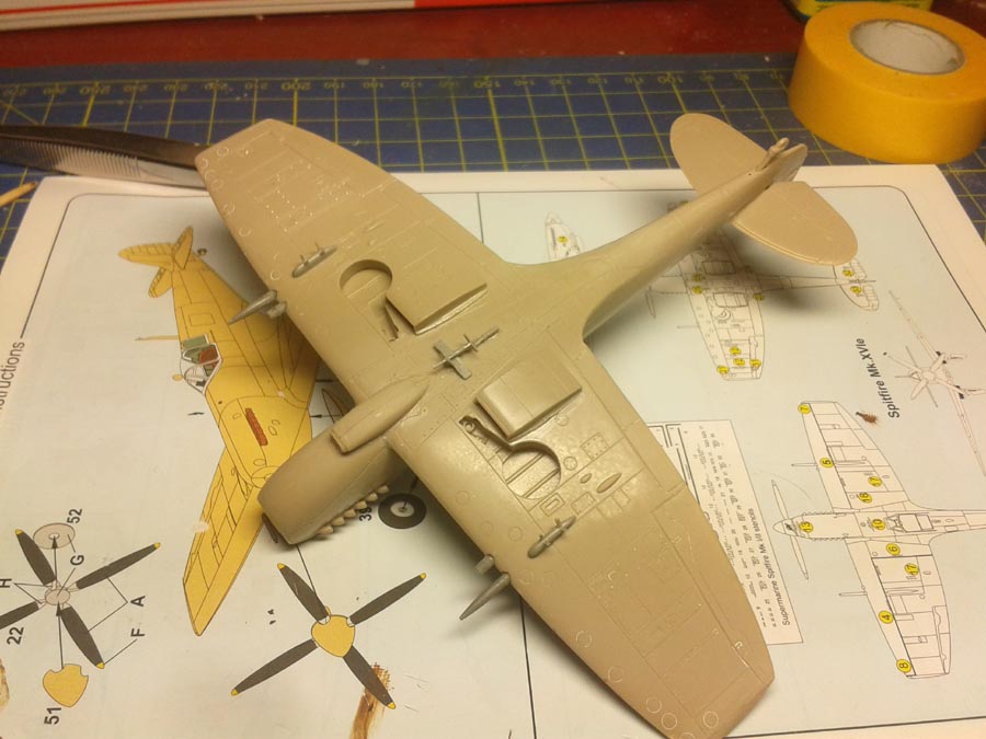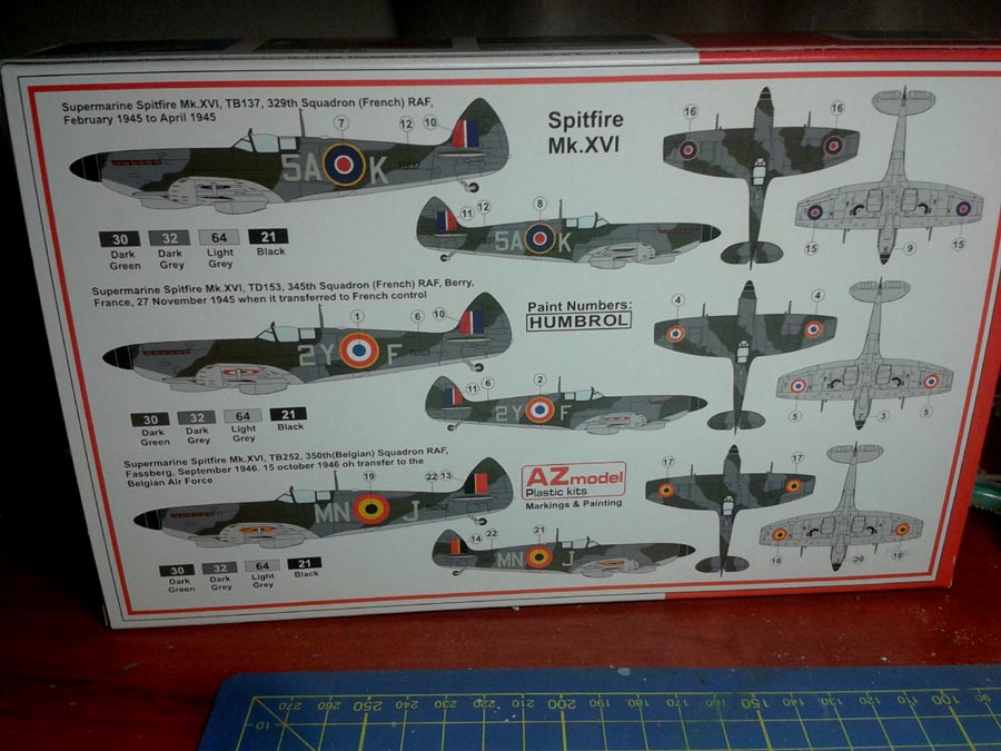 Momentálně šlo všechno ze stolu a řekl jsem si, že začnu odznovu něco co mám šanci dokončit. Spitfire Mk.XVI je dobrá volba si myslím. Budu dělat Frantíka 2Y-F. Závěsníky jsem našel ve šrotáku spolu s nádrží a pumama 250lb a 500lb, tak je tam dám když většinou tahle verze byla spíše používaná na bitevní útoky než na stíhání.